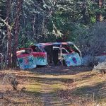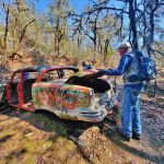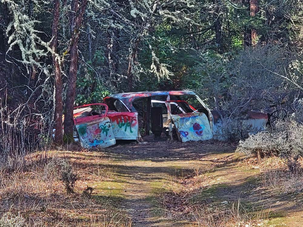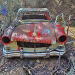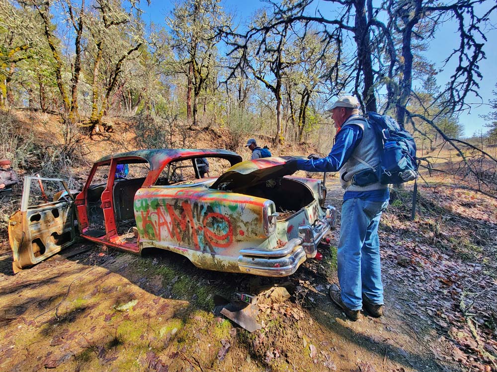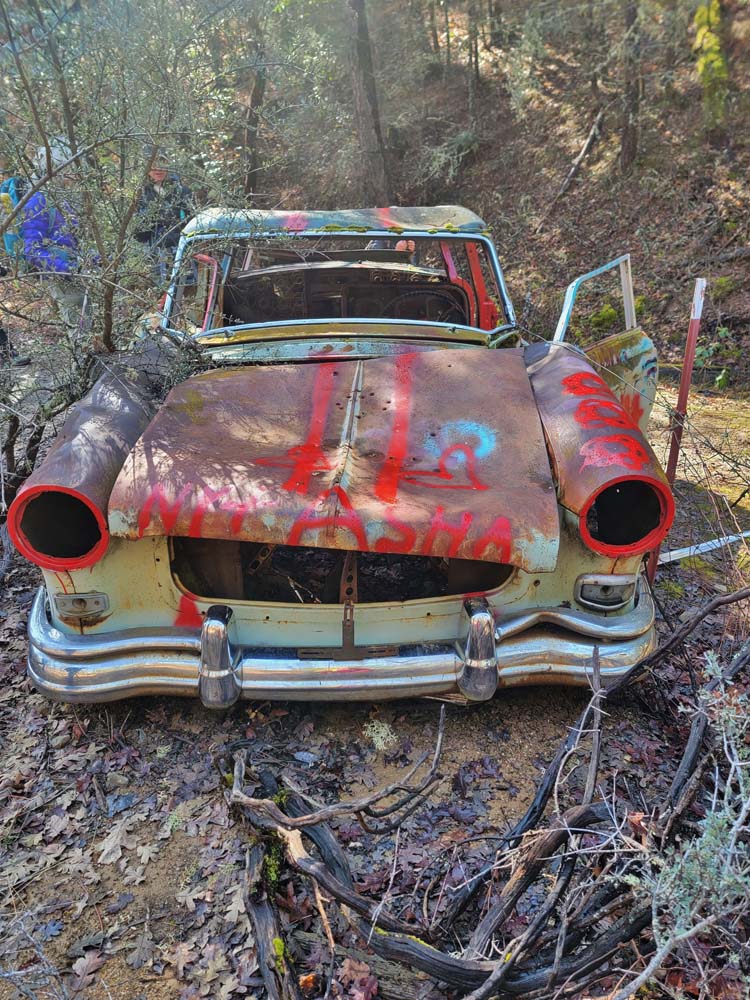 As we headed back down, we saw an abandoned car and decided to explore and make guesses as to what it was. Dan noticed it in the photos and emailed me he thought it could be a 1954 or 55 Nash Statesman.