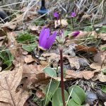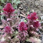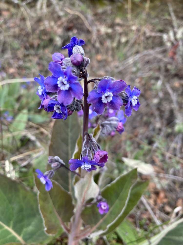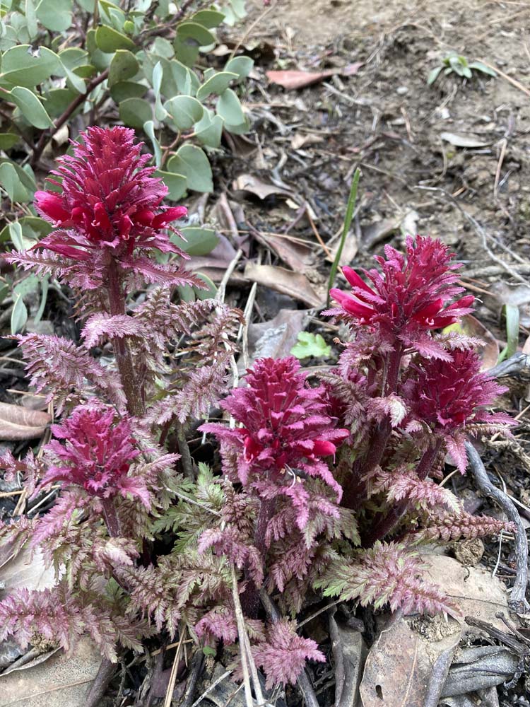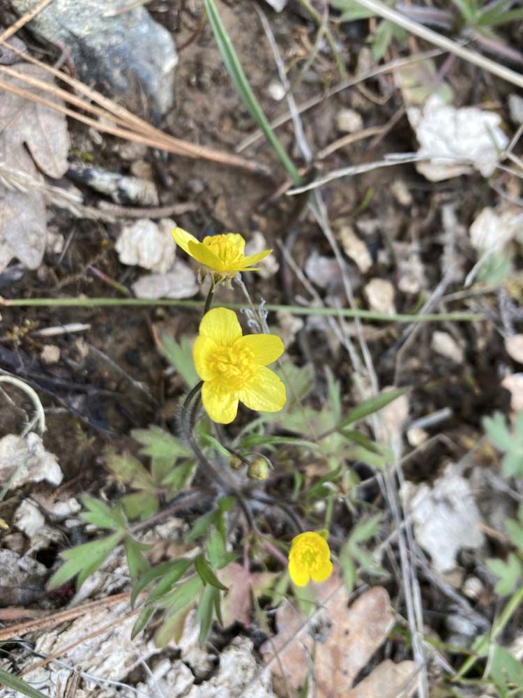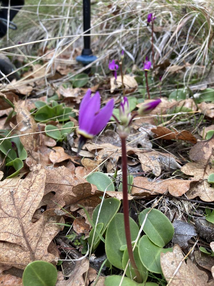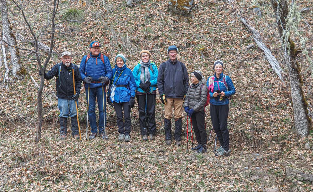 The weather was wintery in the 30s to 40s, but calm with nothing dropping from the clouds. But the environs on the trail gave strong suggestions of Spring with local flowers beginning to show themselves. In the order of the posted photos we saw: red Indian Warriors, purple Shooting Stars, yellow Buttercups, blue Hound’s Tongue and a purple Grass Widow, among others.