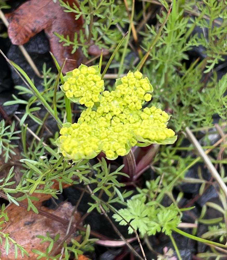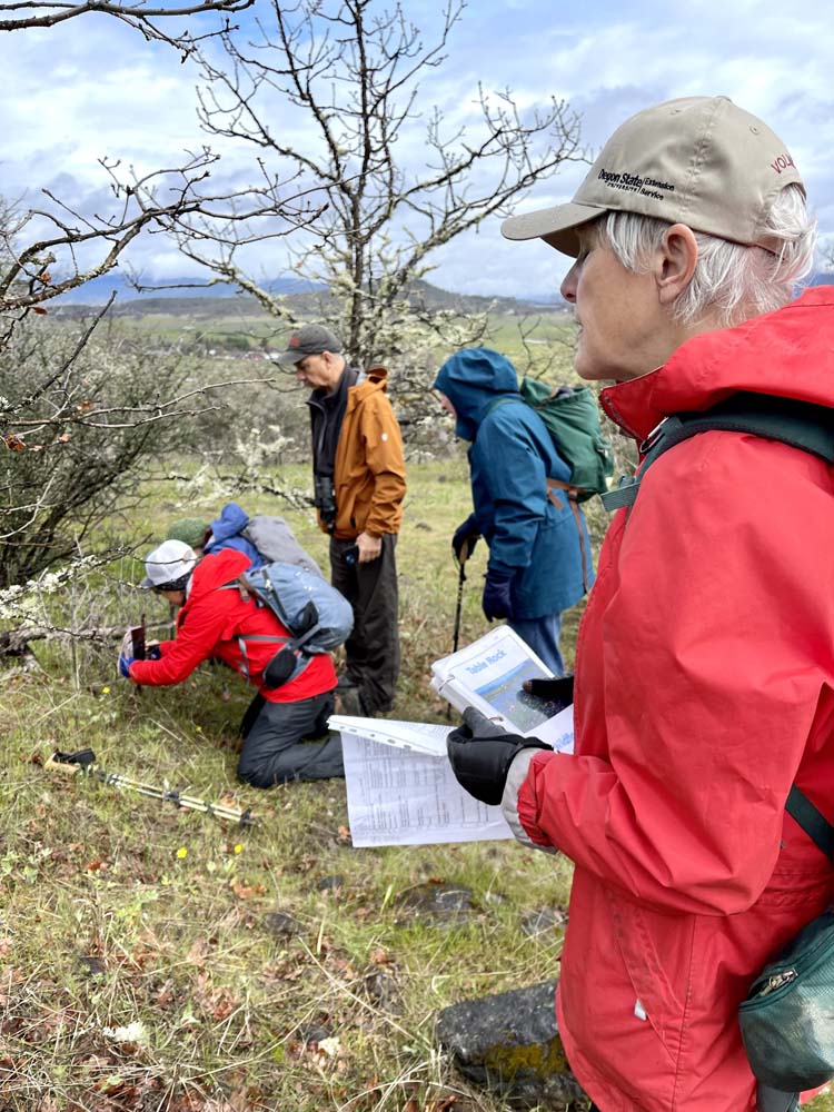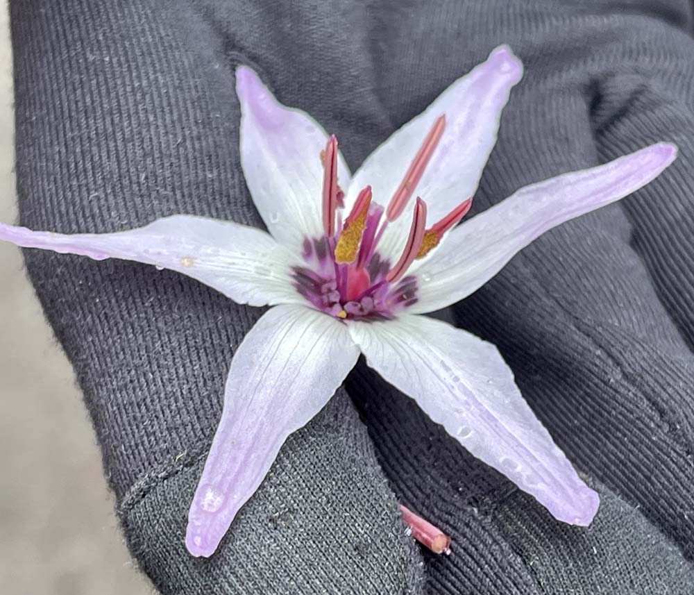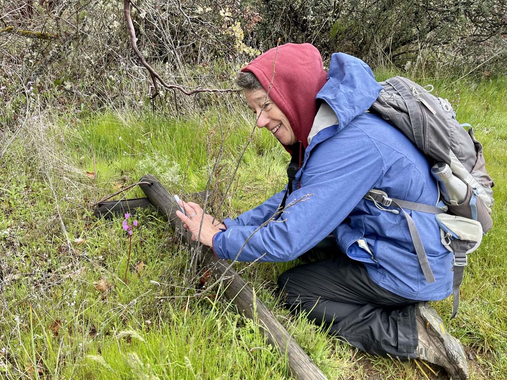 Well. There were literally thousands of Henderson’s Fawn lilies on the slopes. They are endemic (unique) to southern Oregon, and we are lucky to have them in such profusion. Everything else was really onesies or twosies until we reached the flooded top of Table Rock where there were thousands of vernal pool flowers trying to open, including the very rare Dwarf wooly meadowfoam found ONLY on the Table Rocks.