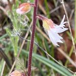 Bedstraw (Cleavers), Blue dicks, California goldfields, Celery-leaf (California) lomatium, California sandwort, Common fiddleneck, Cottonweed (Q-tips), Cowbag or cow udder clover, Cranesbill (Filaree), Dwarf wooly meadowfoam, Dwarf monkeyflower, Grassland (Wholeleaf) saxifrage, Grass widow (Satin flower), Gold fields, Hall’s desert parsley (Biscuitroot), Fineleaf desert parsley (Biscuitroot), Henbit deadnettle, Henderson’s shooting star, fawn lily, Henderson’sHounds tongue, Miner’s lettuce, Southern Oregon buttercup, Popcorn flower, Western buttercup, Woodland star (Small-flowered),