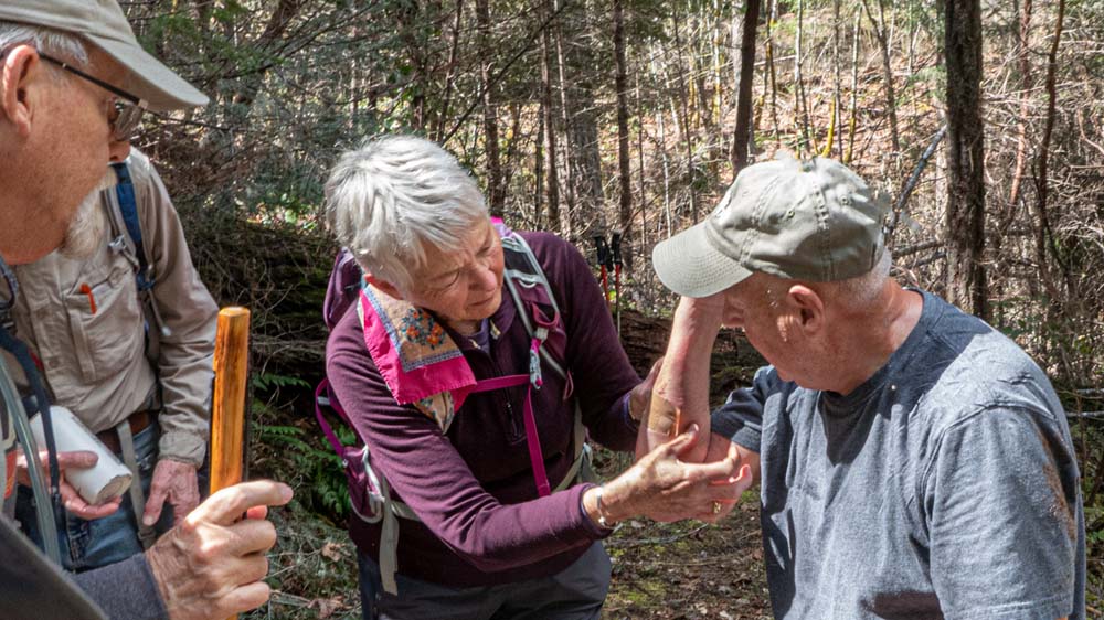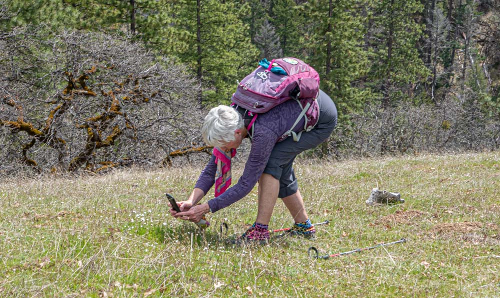 The weather was calm and partly sunny with temps from the mid 50s to upper 60s! Because the earlier predictions of rain were pushed off until evening we decided surprise the group with a bonus hike to Medicine Mountain for a sunny lunch. The mountain is really a grassy knoll with wildflowers and views all around including Grayback Mountain and Sugar Loaf. Native Americans came to Medicine to meditate and practice good medicine.