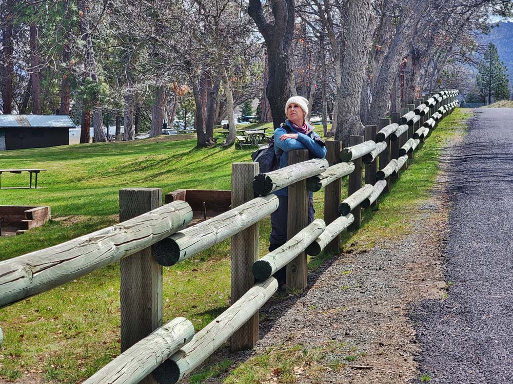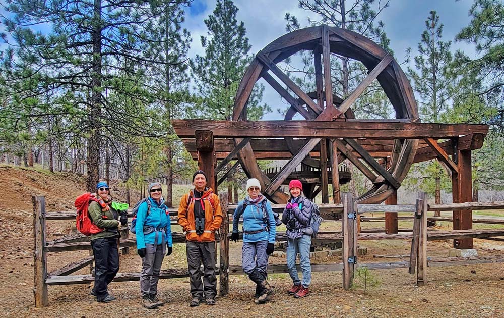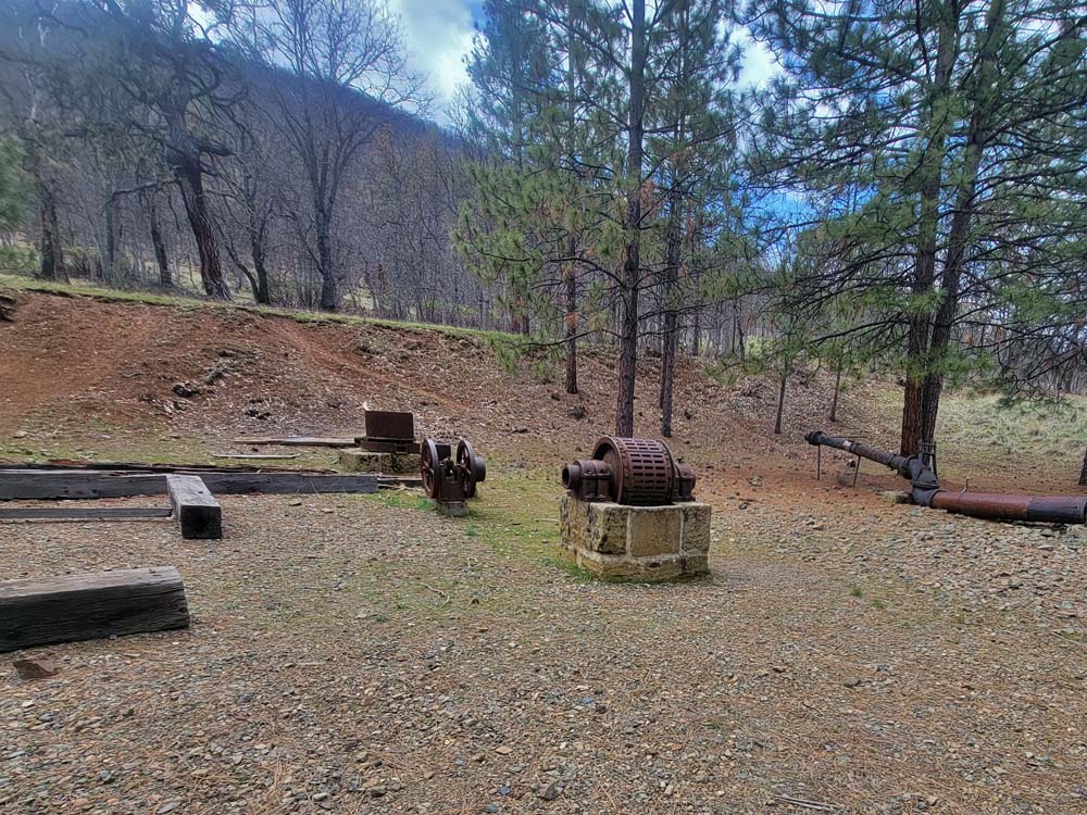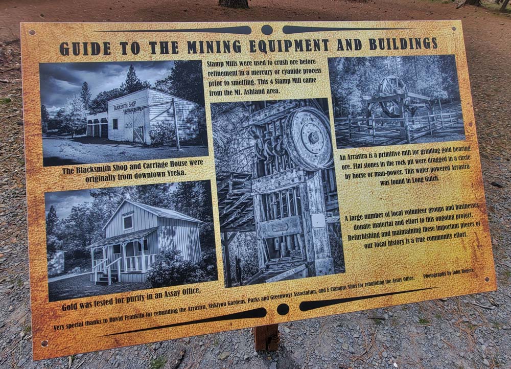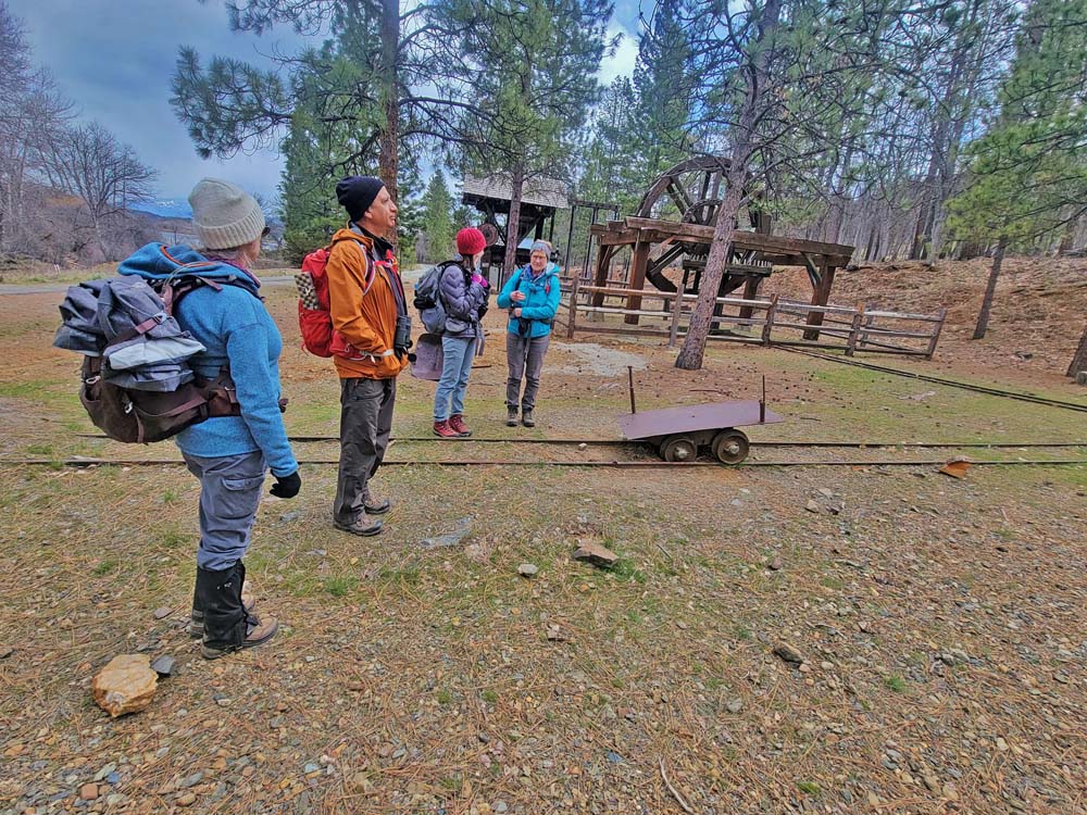 We took our lunch at a large picnic table next to some horseshoe pits. After Lunch, we headed around Greenhorn Reservoir on the Veteran’s Memorial Trail and saw many birds. We crossed a wooden bridge and then completed the trip around the reservoir. We then took the Gold Pan Trail and back over to the Miners Trail and looked at an old blacksmith’s shop, cottage house and an Assay Office where gold had been tested for purity. We also saw some old gold milling equipment.