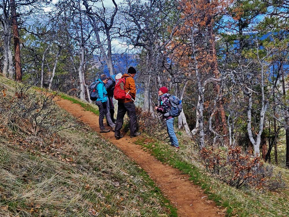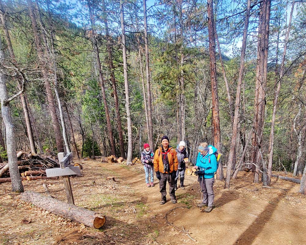 With another week of undetermined weather, we met at Rite Aid at 9:00 AM to pick our best option. We decided since Yreka had a forecast of sun, to hike in Greenhorn park. Barry drove us up and over the Siskiyou summit as we watched snow falling. Shortly into California, the skies cleared a bit and we were met with some sunshine.