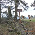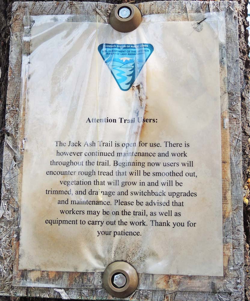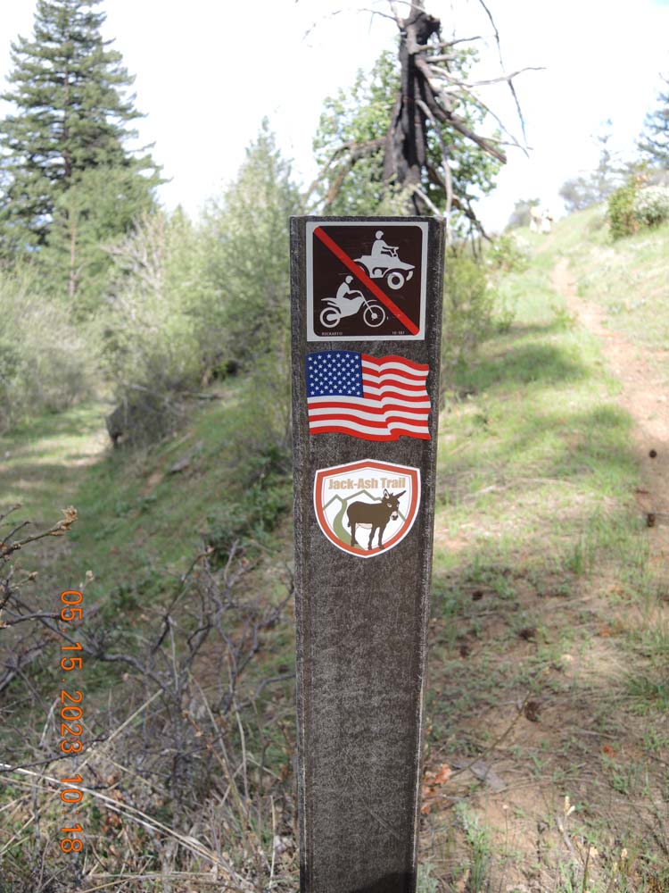 At the top of this initial gain, we found the Jack-Ash Trail post lying on the ground. We lifted it up, placed it in the post hole and supported it with large rocks around the base.