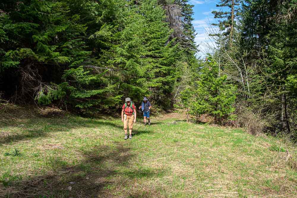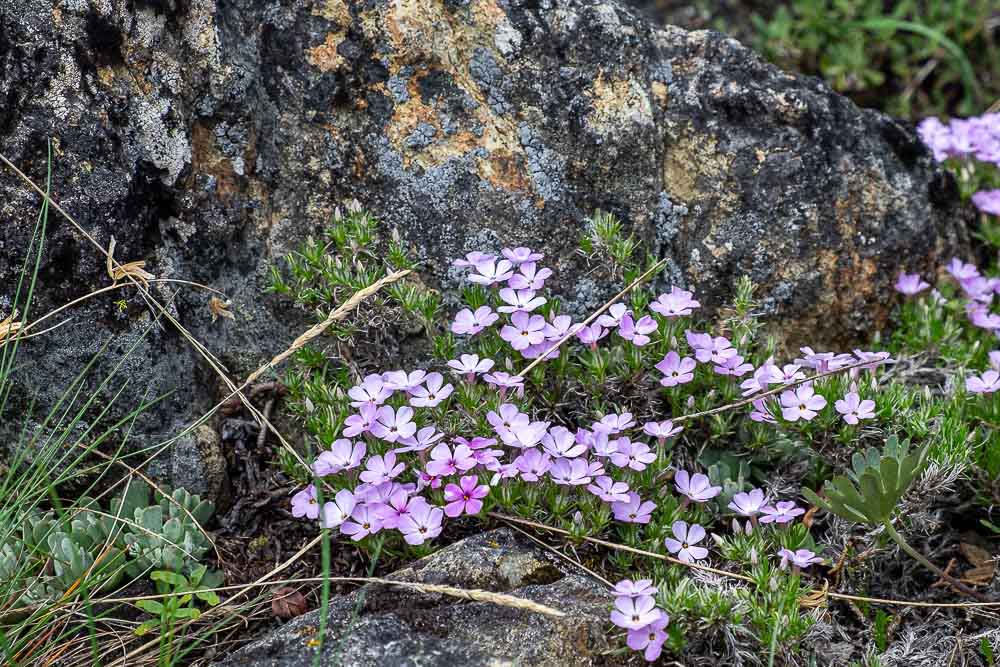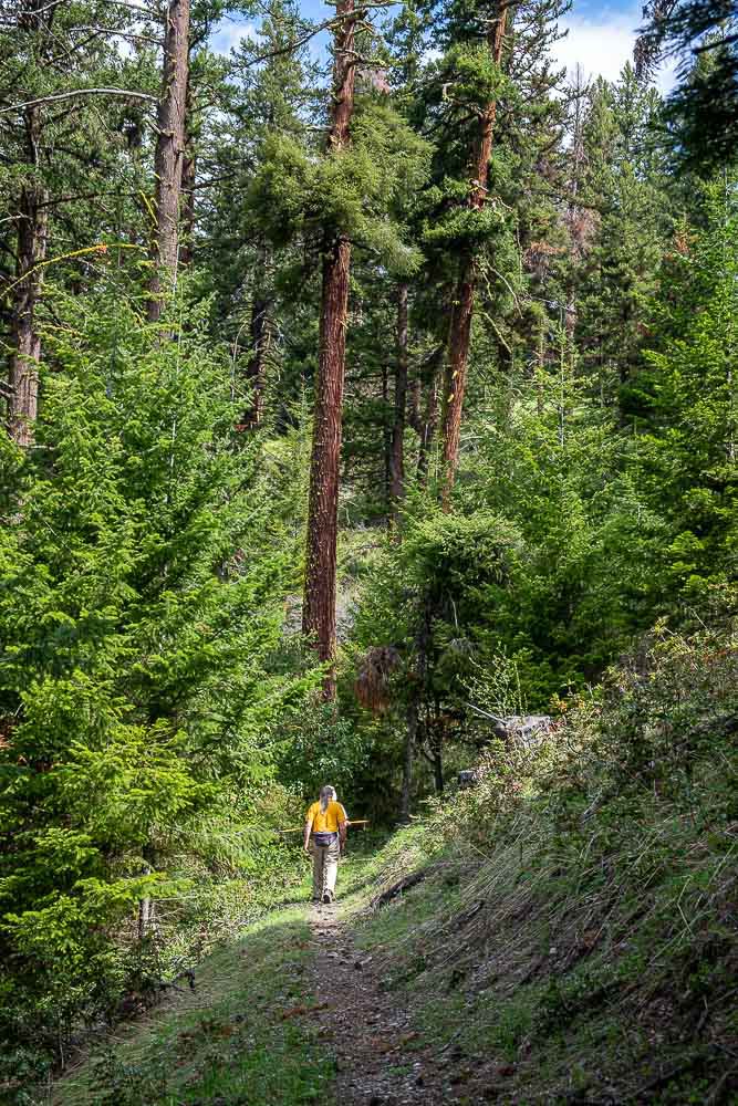 The steady climb up Greenstone Trail is at first rocky but shaded which makes an ideal environment for late season purple Snow Queen and lavender Fawn Lilies.