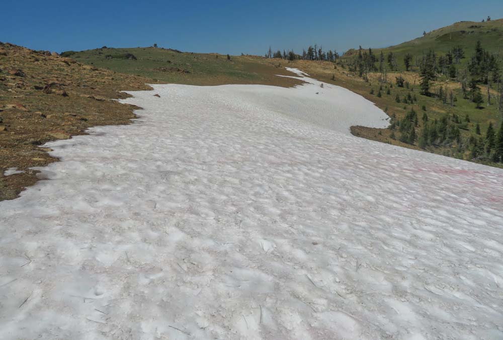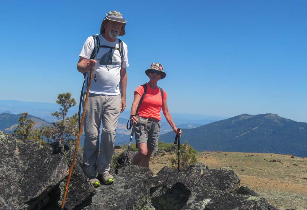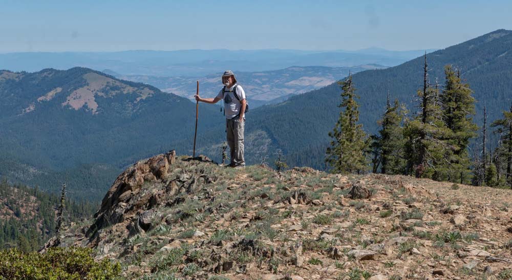 The actual summit of Big Red is slightly over 7,000′ (perhaps 7,028′) and it’s up on the ridge. The lunch summit for many in the group was just over 6,900′. Still there were good views from on top of local peaks including Mt Ashland, Pilot Rock, Siskiyou Peak, McDonald Peak, Wagner Butte, and Dutchman’s Peak, most over 7,000′. You could also see through some haze in the distance: McLoughlin to the east; Shasta, Black Butte and Mt Eddy to the south, and the Red Buttes to the west.