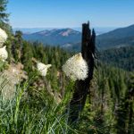 Along the trail, we saw color provided by wildflowers including the first blooms of white Bear Grass, periwinkle Phlax, white Anemone, yellow Sulphur Buckwheat, pink Lewishia, and orange Scarlet Gilia.