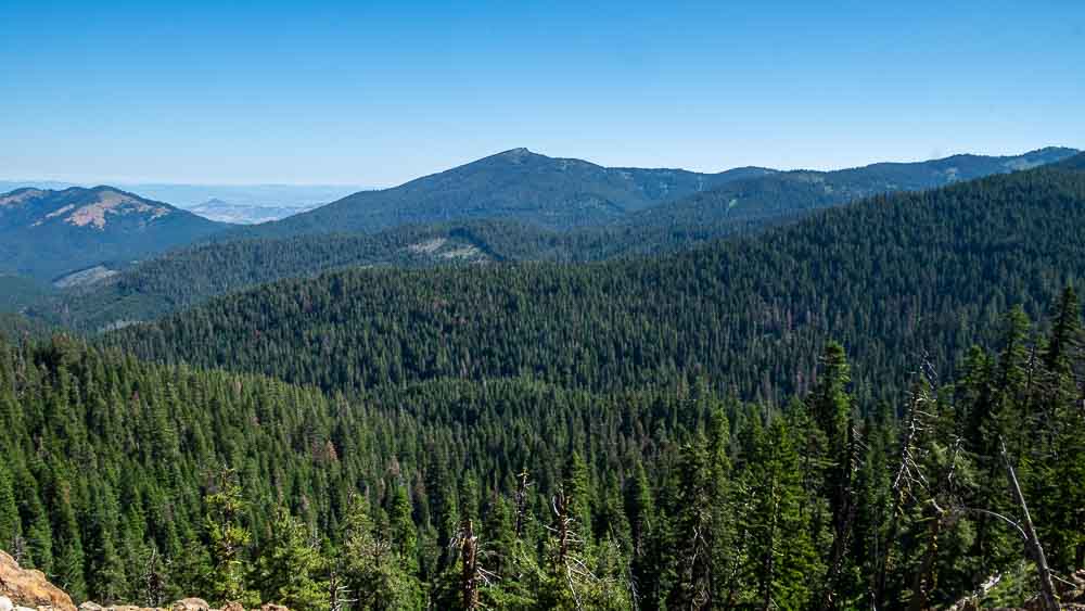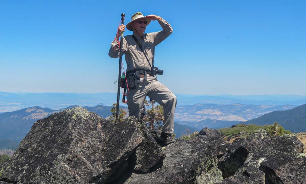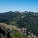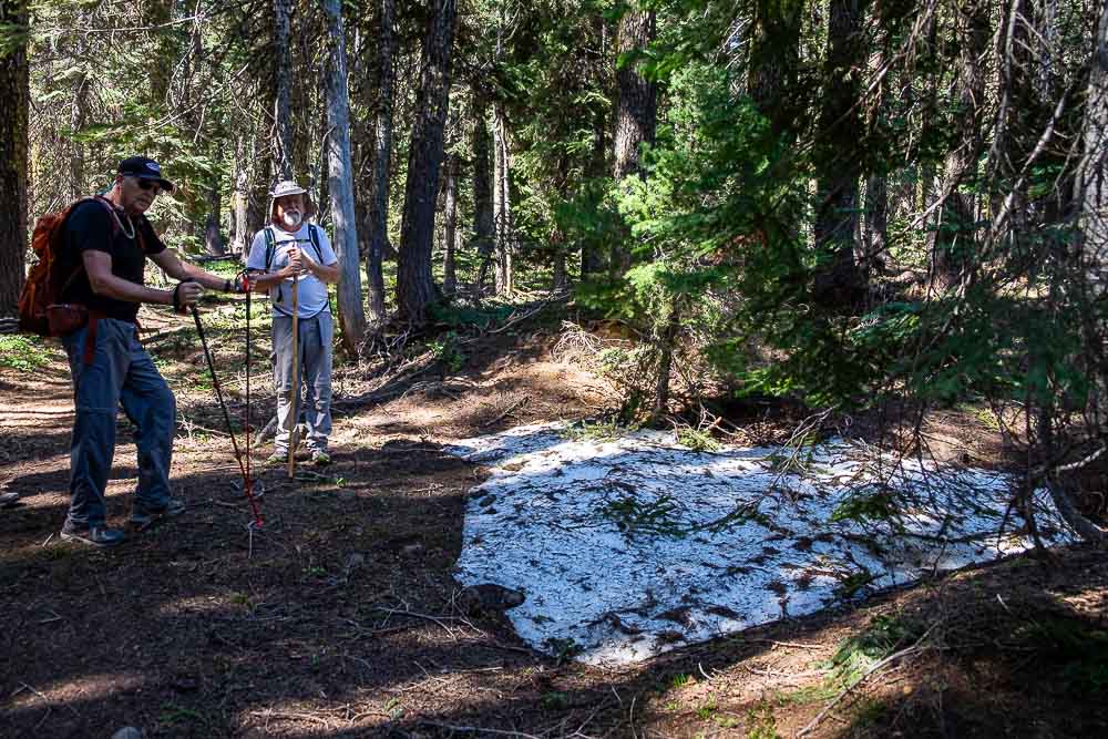 The actual summit of Big Red is slightly over 7,000′ (perhaps 7,028′) and it’s up on the ridge. The lunch summit for many in the group was just over 6,900′. Still there were good views from on top of local peaks including Mt Ashland, Pilot Rock, Siskiyou Peak, McDonald Peak, Wagner Butte, and Dutchman’s Peak, most over 7,000′. You could also see through some haze in the distance: McLoughlin to the east; Shasta, Black Butte and Mt Eddy to the south, and the Red Buttes to the west.