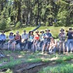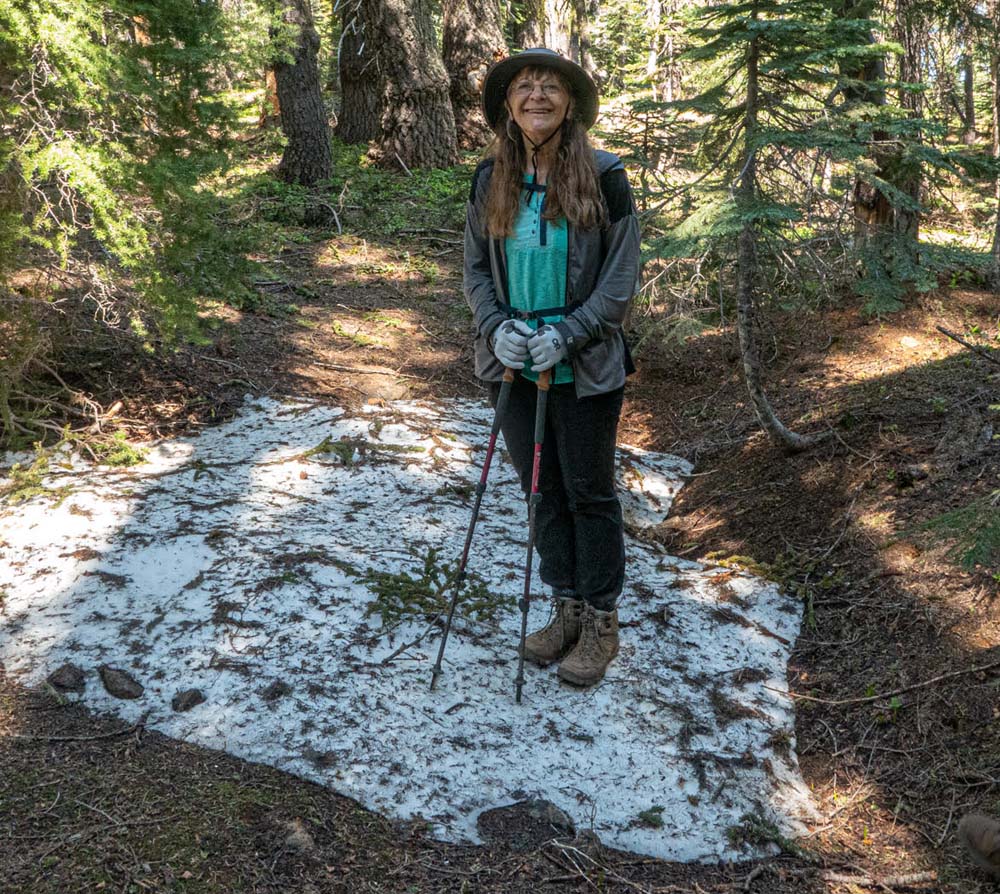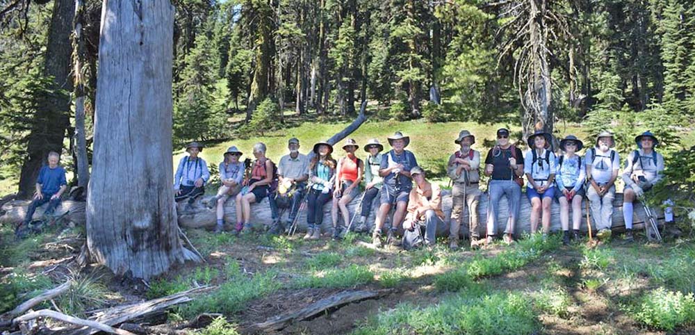 Our big group of 17 hikers gathered at Siskiyou Gap after a long dusty ride up FS22. Blue skies and fresh air greeted us as we disembarked from the cars and did some pre-hike visiting. Before we headed up the PCT, a Thru Hiker came charging down the path and across the road in front of us. He was the first of perhaps a dozen we’d encounter on our hike.