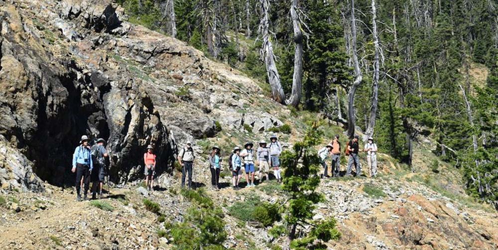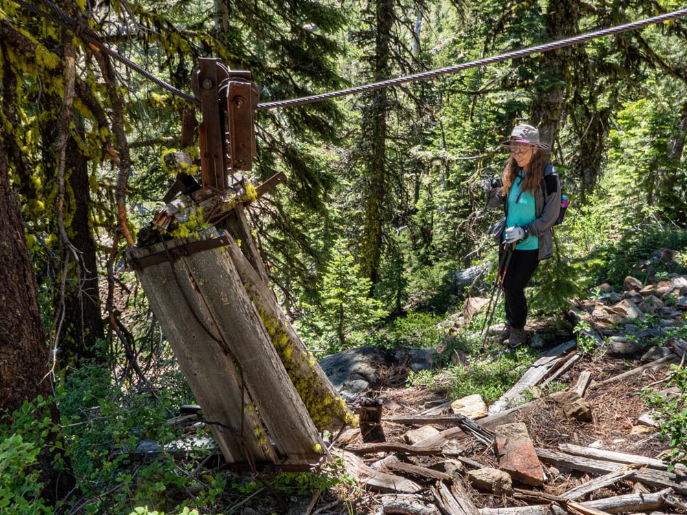 Our group became scattered before lunch as many headed up towards the lunch summit, some stayed on the trail for lunch, and some went down off the trail to find an old mining cart for a photo. Those in the early lunch group headed back down to the PCT and returned to Siskiyou Gap. Sunny and I waited for the mining cart three and joined them for lunch; then took the ridge to the true summit and continued south on the ridge down through the forest and came out onto the PCT for our return.