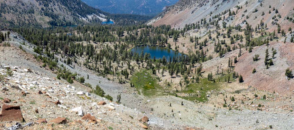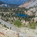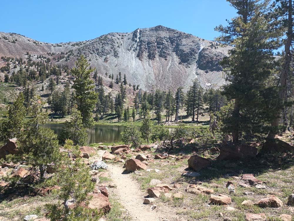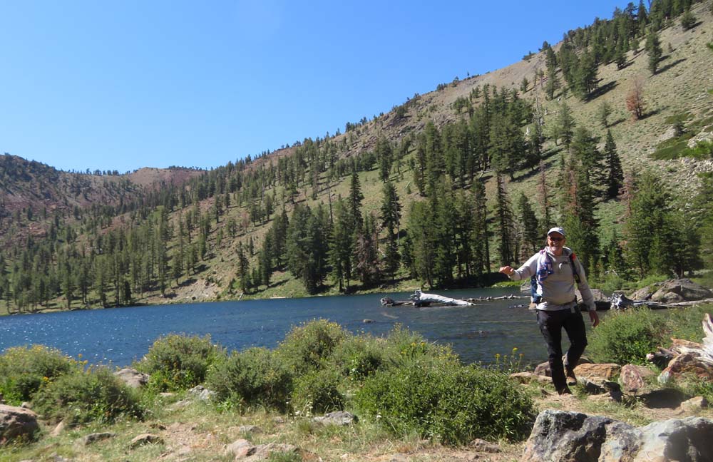 Our large group had many adventures, first Geo Bob headed off to explore the PCT around Lower Deadfall Lake and Patricia went in the lake for a cool dip, she later refreshed in Middle Deadfall Lake. The mountain climbing group splintered with Alison discovering a hidden lake from Eddy’s saddle, and Liz climbing a rocky outcropping after a nap by the Upper lake and Sunny heading west from the saddle to climb her own personal rocky peak.