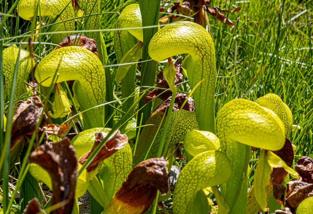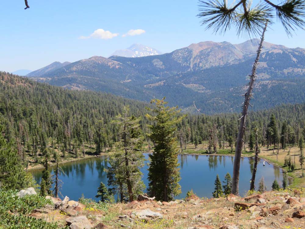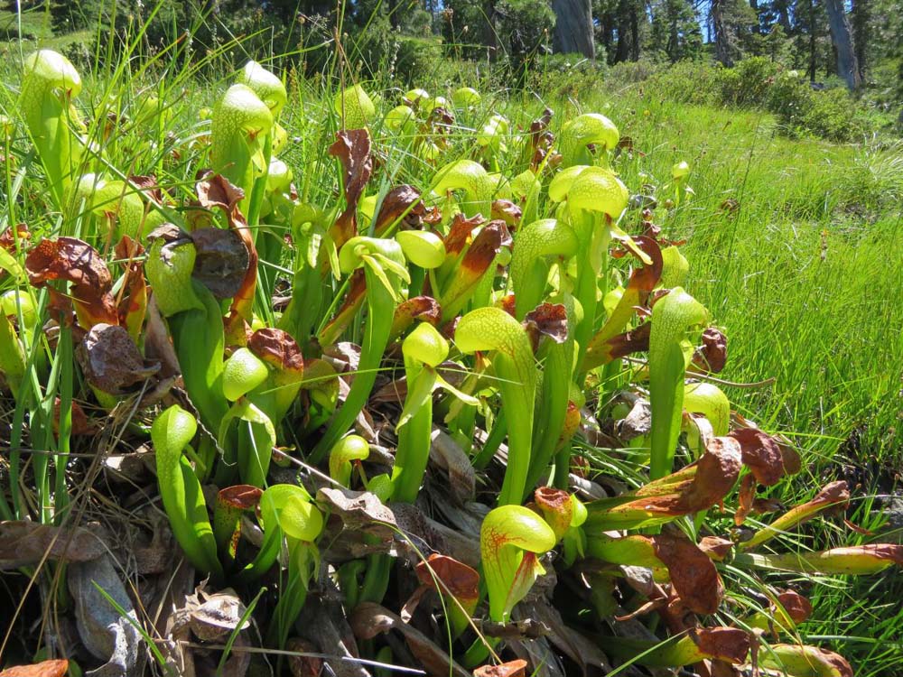 Back on the PCT out to Bull Lake our hikers enjoyed great views of Mt. Shasta and neighboring mountain ranges; and colorful wildflowers featuring Cobra Lilies (Darlintonia) and Blue Gentians.