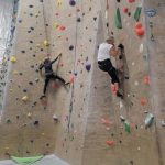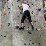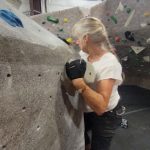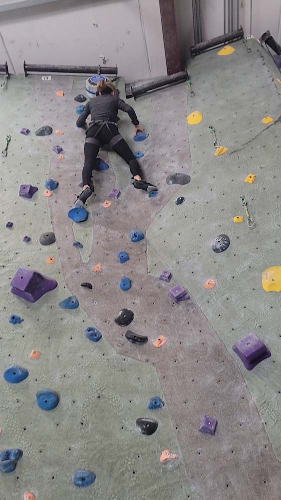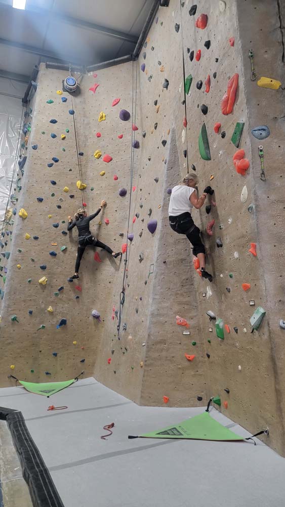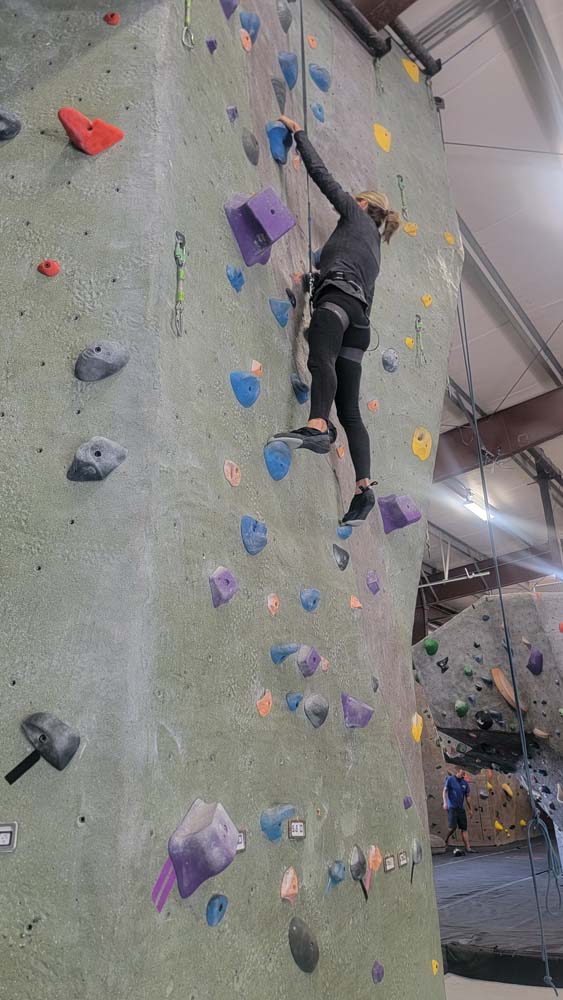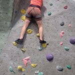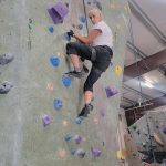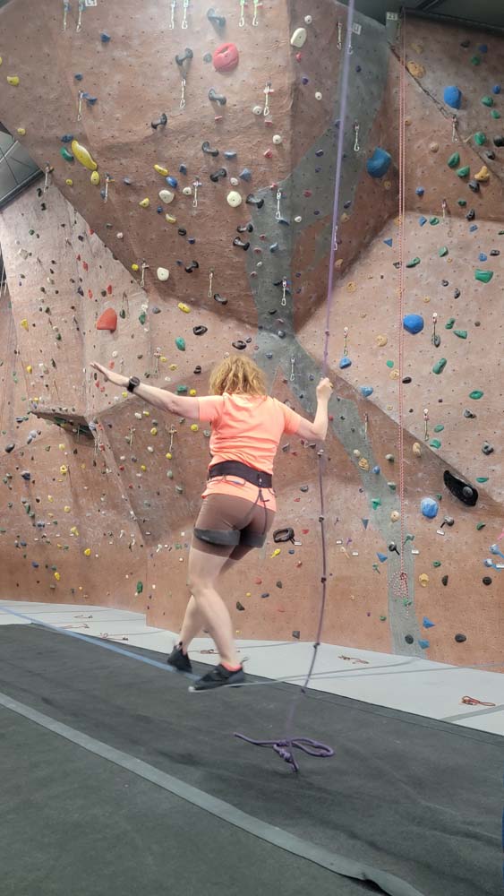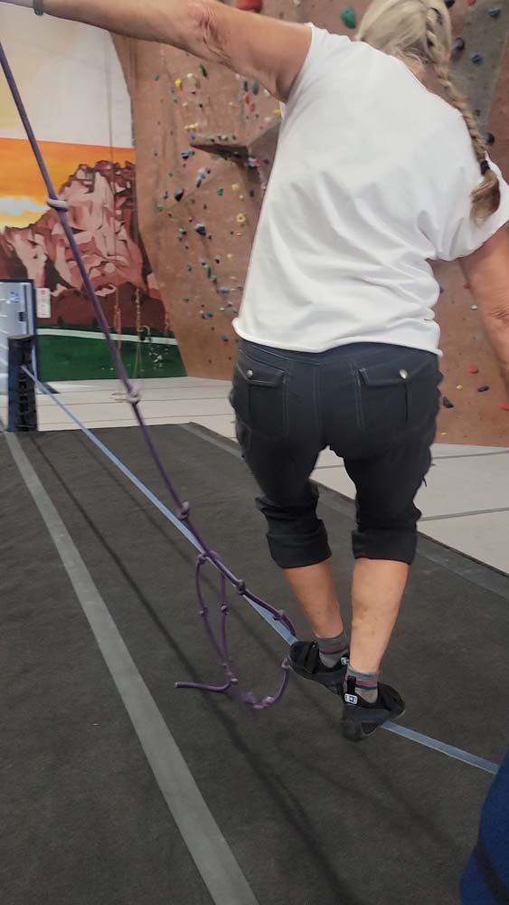 We started on the big rock wall with the harnesses. Leslie and Sherry took to this fast. Both of them reached the top. The hardest part was letting go and letting the rope and harness slowly lower you back to the floor. I tried on a harder route and was not very successful. I decided to go climb on the shorter walls so I could boulder without the harness. This was my favorite. Leslie and Sherry came over and did some bouldering too. I eventually went back to the big wall and was able to climb the easier route but still preferred the bouldering. We also had great entertainment watching a little 7 year old girl climb up with no fear. She was really excited to be there. We decided to give tight rope walking a try. This was a bit harder to do and we didn’t stay on for long. I eventually was able to get 6 steps in. I attribute that to my days of working out on the balance beam as a gymnast when I was younger.