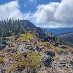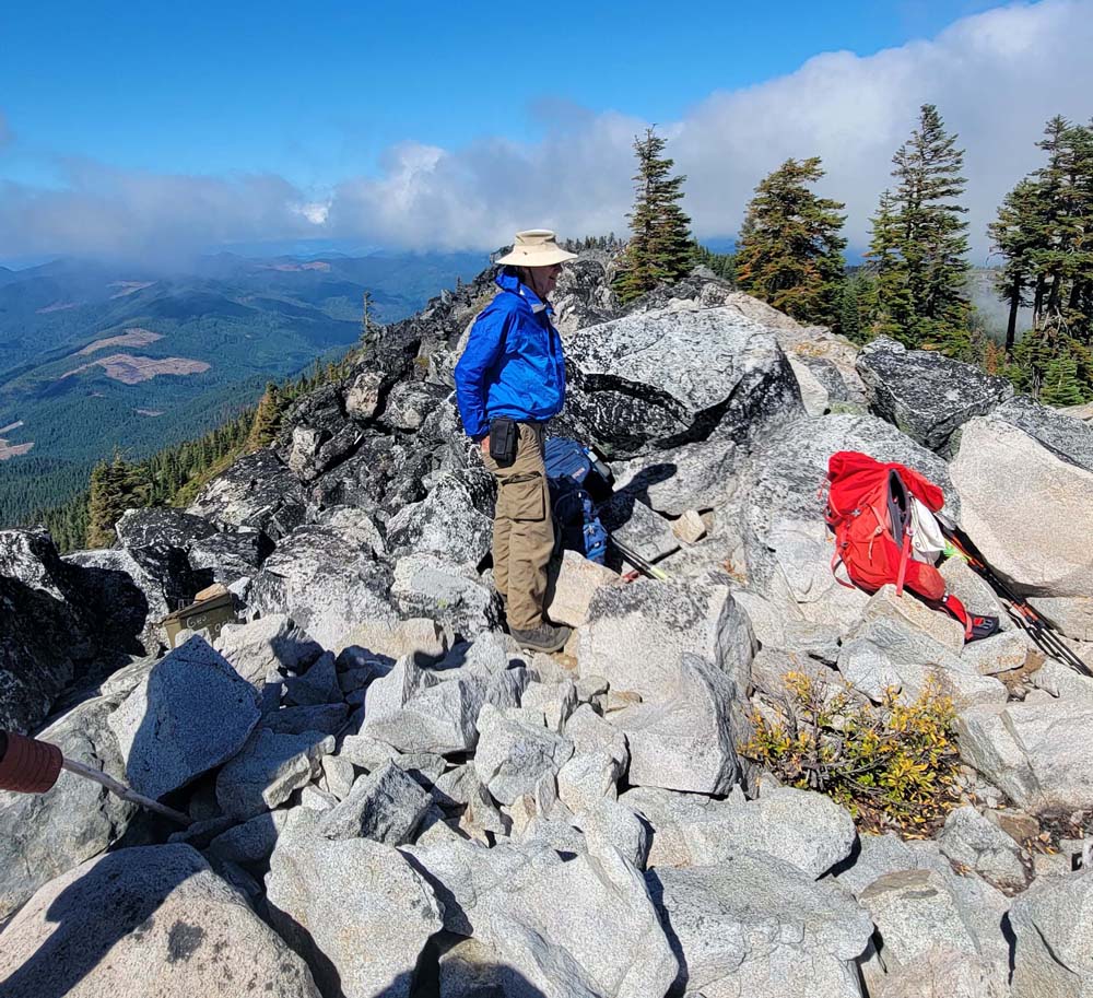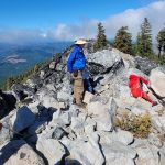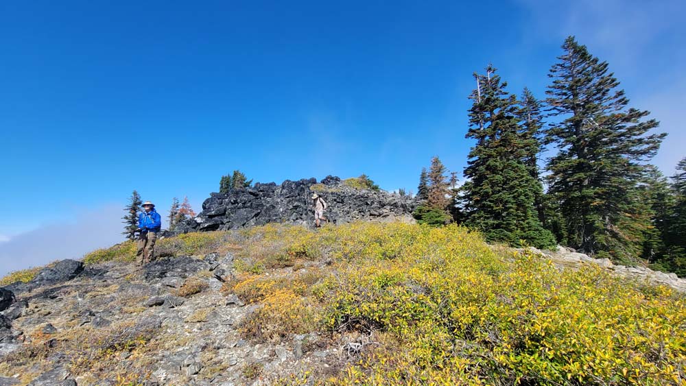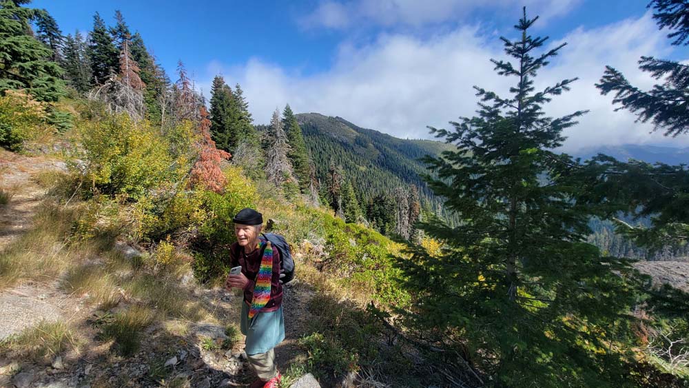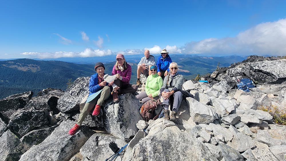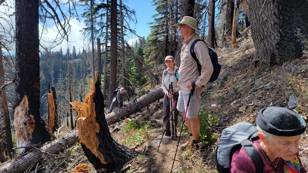 On Wednesday September 20th six hikers drove to the upper O’Brien trailhead to hike Grayback Mountain elevation 7,048′, the tallest peak in Josephine County. We had a new hiker to our group named Michael H. from Texas. The grade of the trail goes up right from the beginning of the hike. We had multiple stops for wardrobe adjustments in the 1st mile.