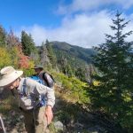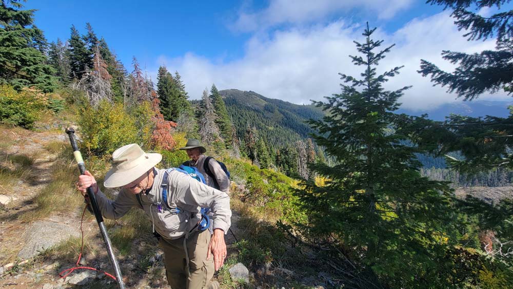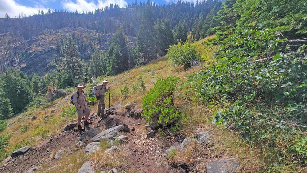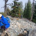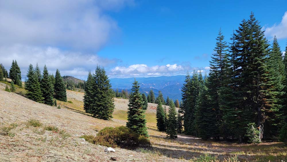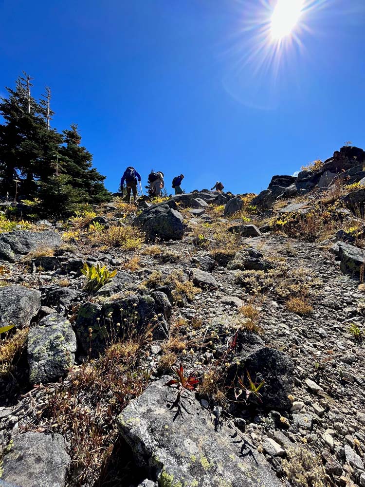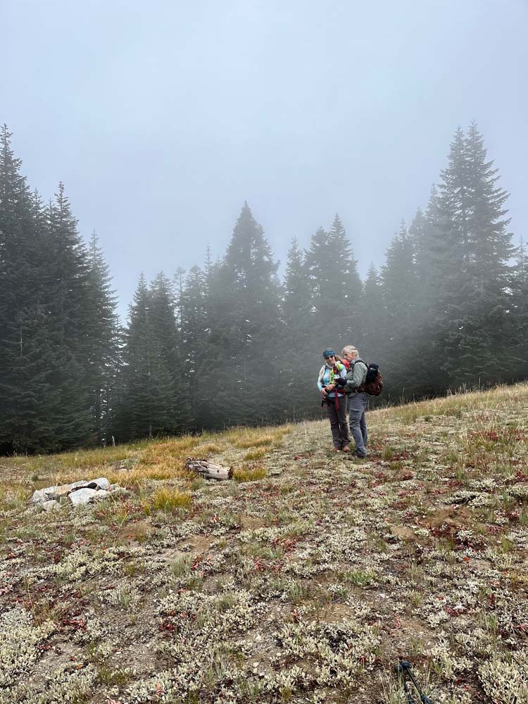 On Wednesday September 20th six hikers drove to the upper O’Brien trailhead to hike Grayback Mountain elevation 7,048′, the tallest peak in Josephine County. We had a new hiker to our group named Michael H. from Texas. The grade of the trail goes up right from the beginning of the hike. We had multiple stops for wardrobe adjustments in the 1st mile.