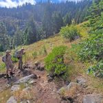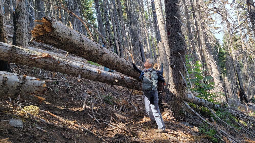 We continued up and made our way up to the Boundary Trail #1207. From there we went right towards Windy Gap and could see that trail maintenance had not been done on the rest of the trail. We made our way over, under and around downed trees.