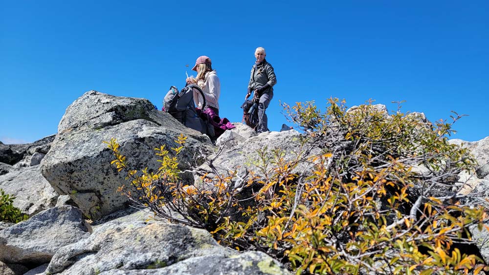 After reaching Windy Gap, we had a short break because there was no longer a set trail and we would be making our way up to the ridge line. The clouds were low and passing right over us so I thought we would not have a good view. We climbed up and over rocks to a few false summits and finally reached the top and the low clouds had passed.