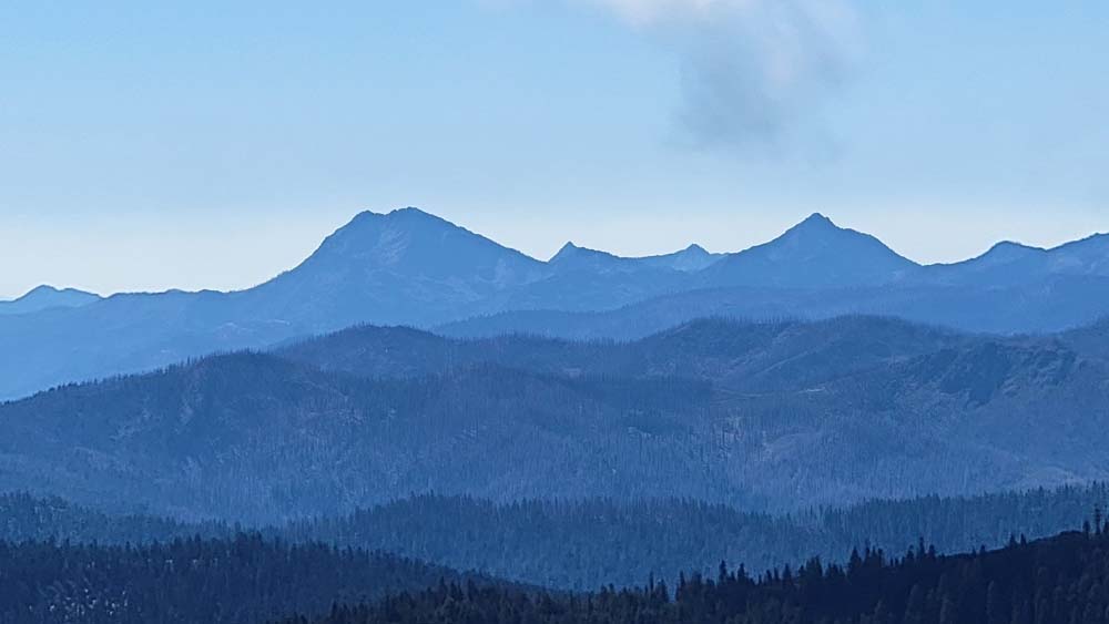 We had our lunch and could see views of Preston Peak, The Red Buttes, Big Sugarloaf to name a few. As we started to descend, I could see a little bit of smoke from a fire. After moving along the ridgeline, we could really see a large cloud of smoke that we could not see from the summit. It was in addition to the smaller bit of smoke we had seen. We assumed it was from the Smith River complex fire which was at 93,000 acres.