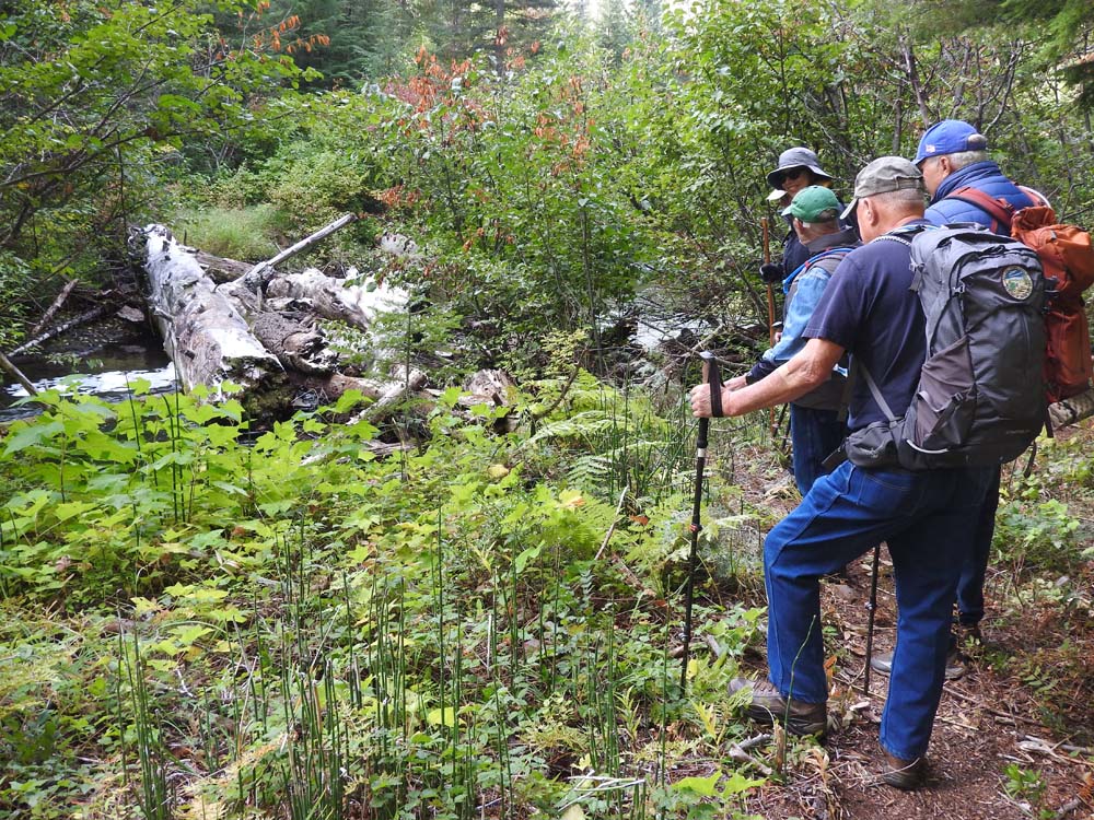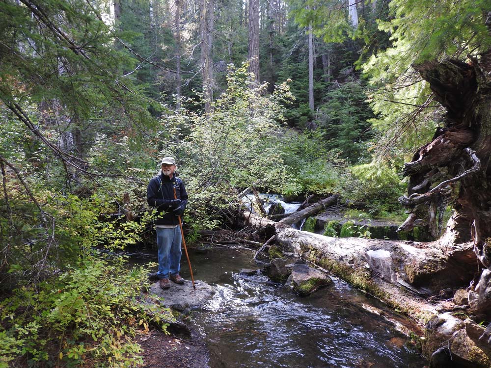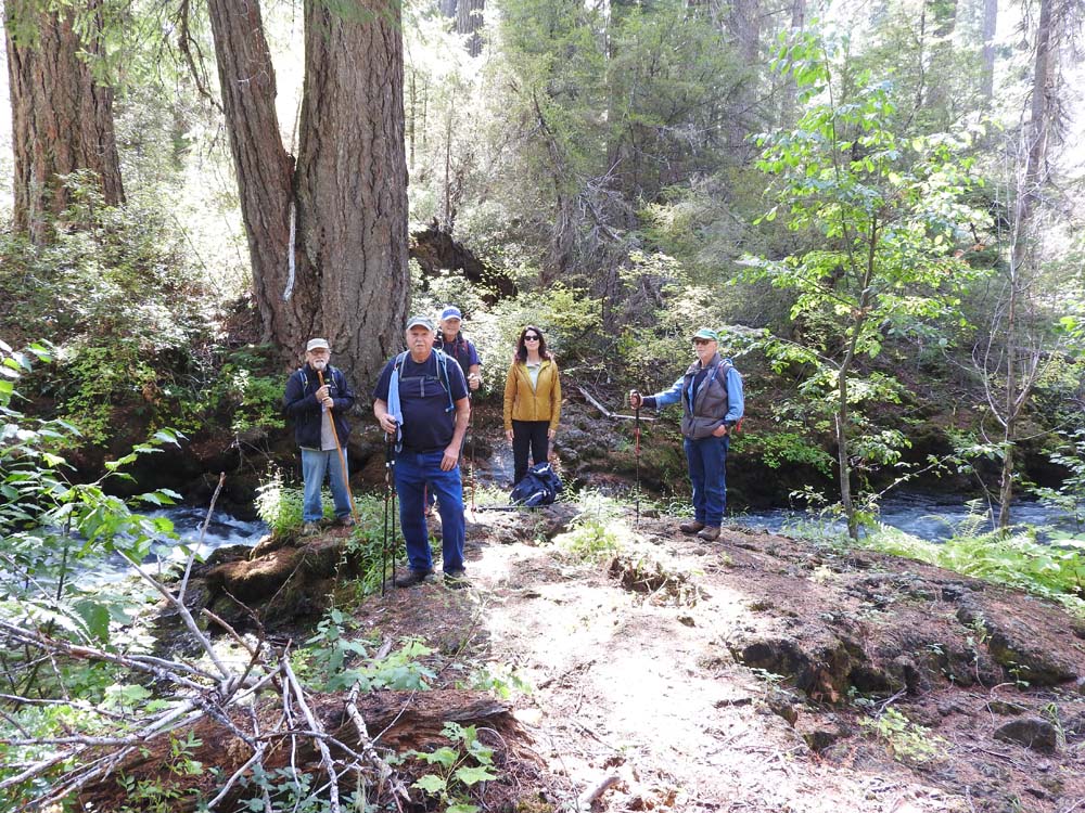 And we are happy to announce it’s a very nice hike through open forest down to the creek; then along the creek cascading over ancient lava beds. We followed the newly opened trail cleared of heavy vegetation through old growth forests with huge trees in a calm environment.