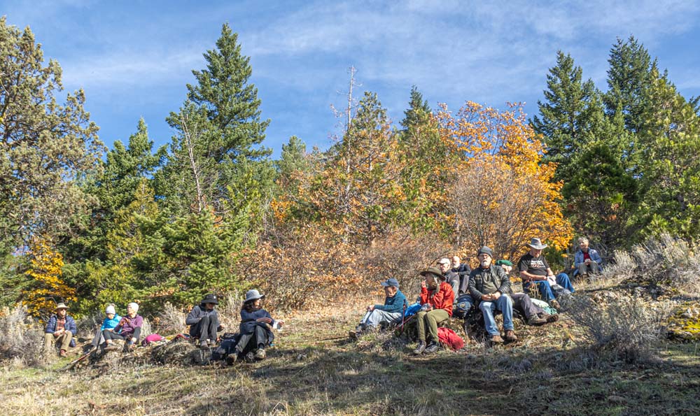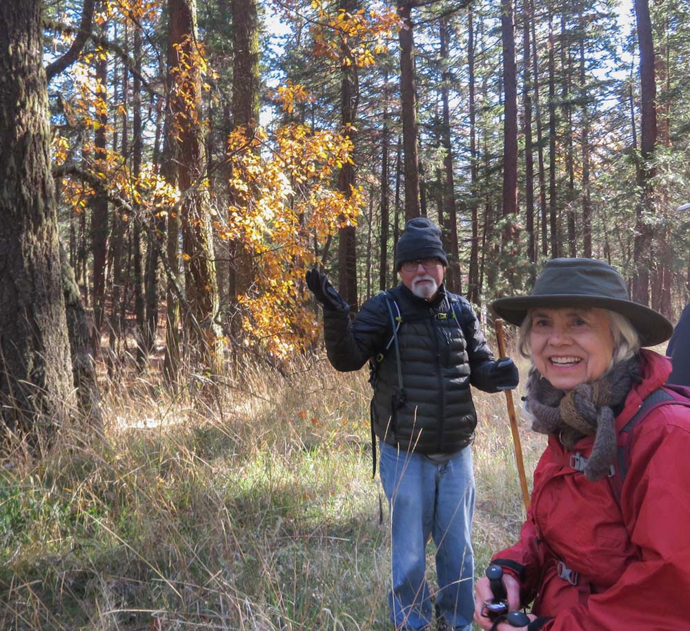 Our group of 15, went across the road and around the gate to head up the old decommissioned BLM Road towards the Buck Rock Trail Loop. The ground in the shade was frosty but eventually, we broke out into the warming sun as we gained elevation.