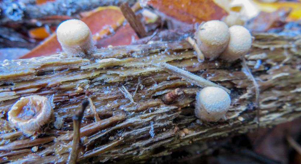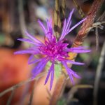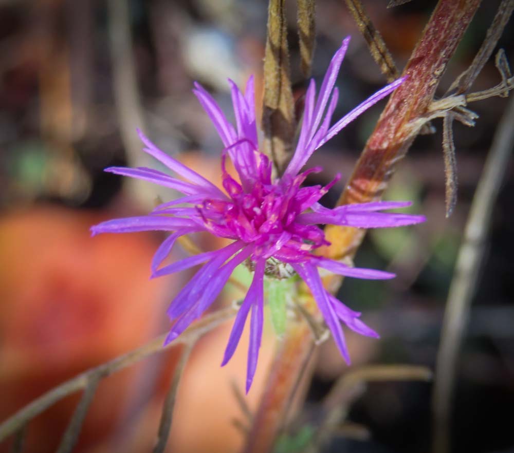 We found the east portal and climbed up to it for our group shot. Then we hiked out from where it was hidden in the forest and back to the main trail that headed up near the summit. On top, we were surprised to find some purple Asters blooming in late autumn as well as some yellow flowers.