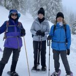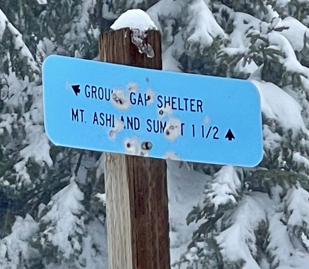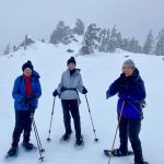 There were brisk winds at the 7,000’ level by Rabbit Ears, so we quickly took photos and headed back down the trail. We only saw two cross-county skiers all day until we got back to the campground area. Then a group of young people came up the trail carrying large packs headed for an overnight camp at the Grouse Gap shelter. We decided that a snow camp was not in our future plans, but we agreed that it have been an invigorating snowshoe. Total distance: 4 miles.