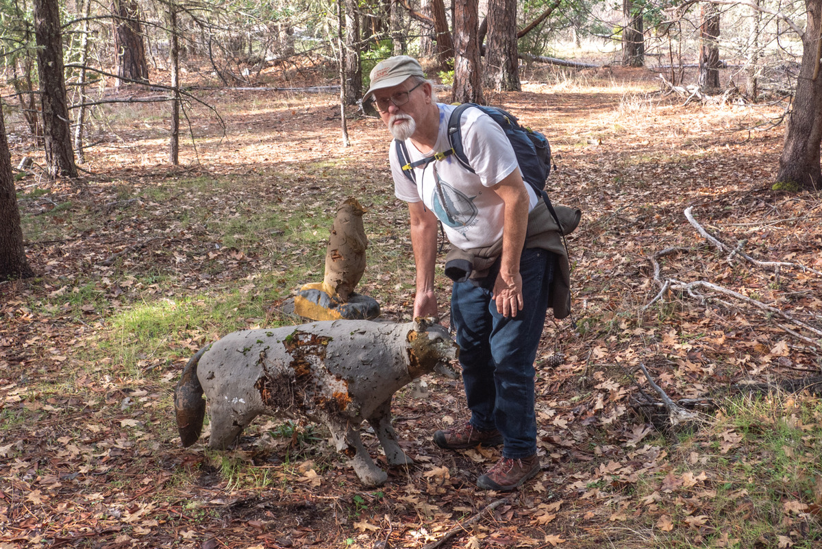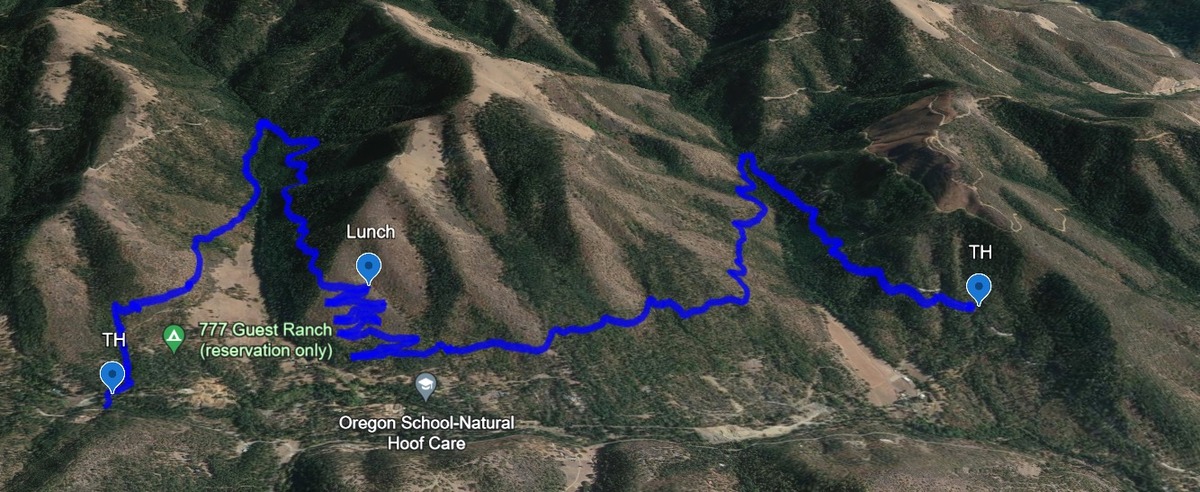 The hike has a gain of about 600 feet, mostly headingĀ towards lunch. After lunch, it's mostly downhill or level with a left turn onto the J-A trail for the last 2 miles. Active mining claims were seen posted on either side of the trail. Coming out onto Griffin Ln we found the shuttle car that took the drivers back up to the Demming TH. Post-hike 7 of us drove into Jacksonville for a pitcher at Boomtown. The warmer weather made it a really pleasant day. Rich Stickle