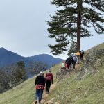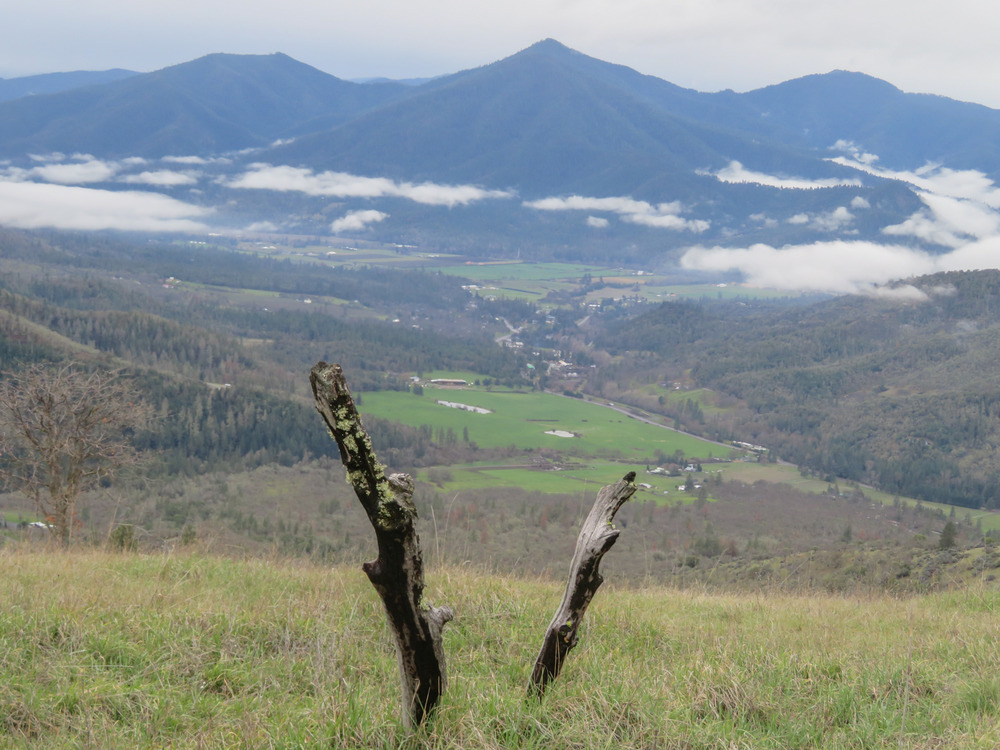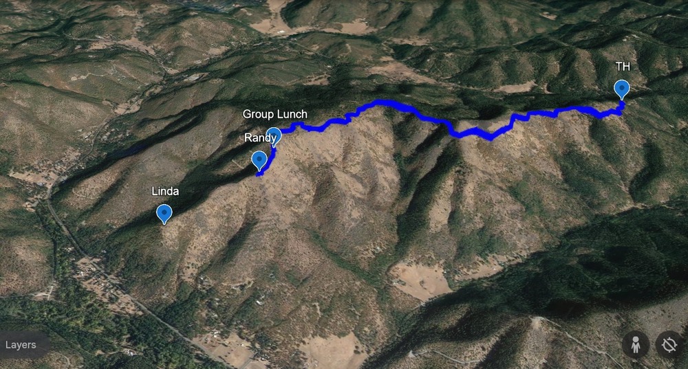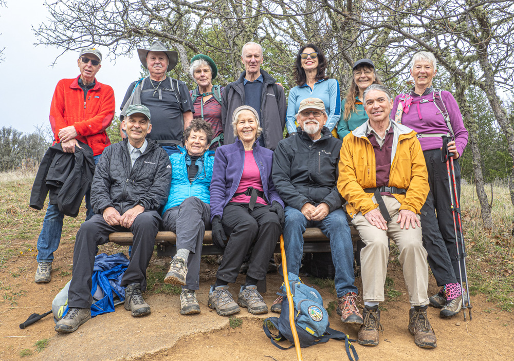 Our hiking luck came through again when one of our members suggested we take a left on a previously unknown side trail for a new lunch spot with a nice view of the valley and the mountains across.