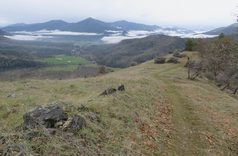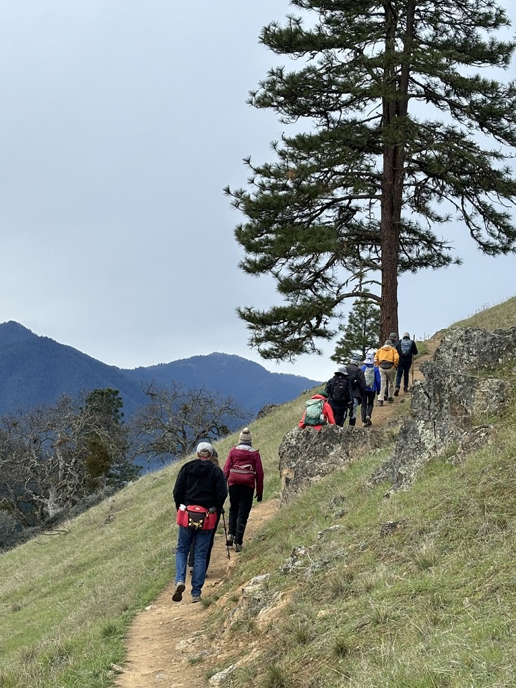 We bet that the weather would cooperate and we won our bet. Although it was windy at Rite Aide parking, it was calm at the Trailhead. Where seven Monday hikers greeted the four from the Ashland Rite Aid with one more screaming up the road just as we started; the early morning rain had passed and we had another great day for hiking.