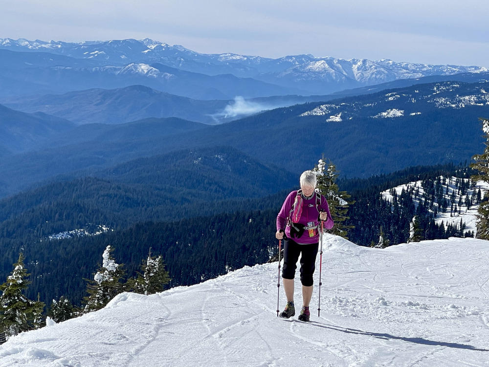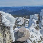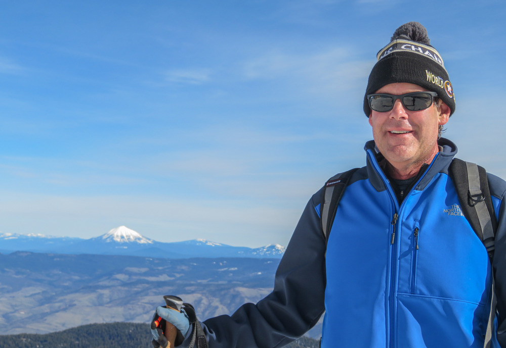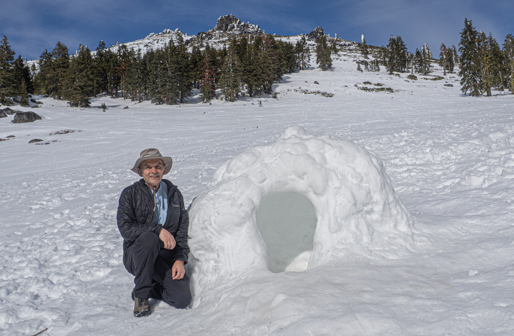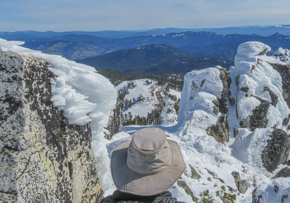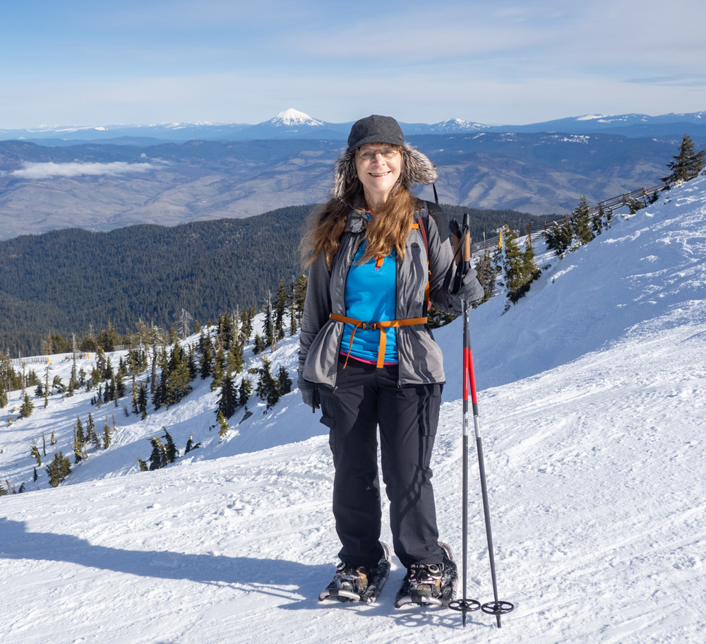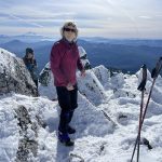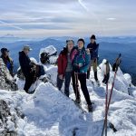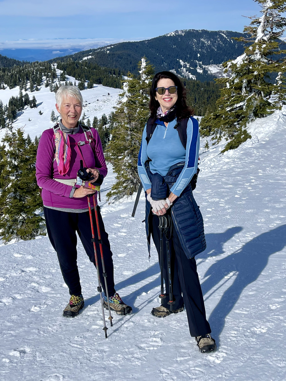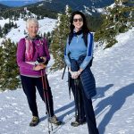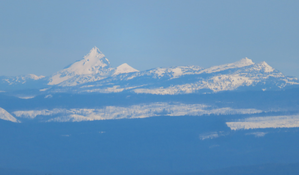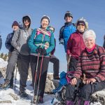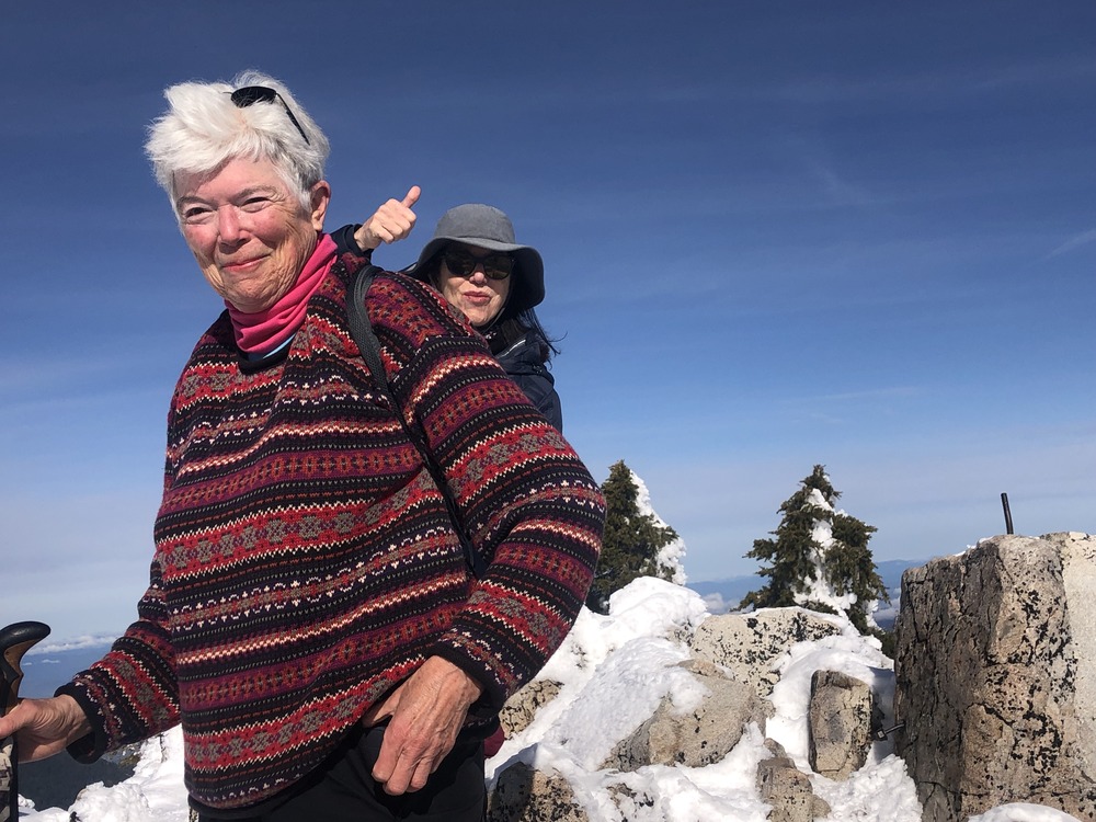 Some of us get trekking up the groomed road past Rabbit Ears to see the view into California. The allure of going to Mt. Ashland summit (elevation 7,532 feet) on a brilliant, sunny day was enticing. So, we kept going, encouraged by our spirited team. We climbed past the “golf ball” to the top of the Mt. Ashland ski lift and up to the highest rocks. There were vast views across the Rogue Valley and beyond where we could see the Crater Lake peaks, and down to a small Pilot Rock below. see the Crater Lake peaks, and down to a small Pilot Rock below. Many comments were heard about the exhilarating climb and how fortunate we are to live in such a stunning landscape. Total mileage – 5.6 miles.
