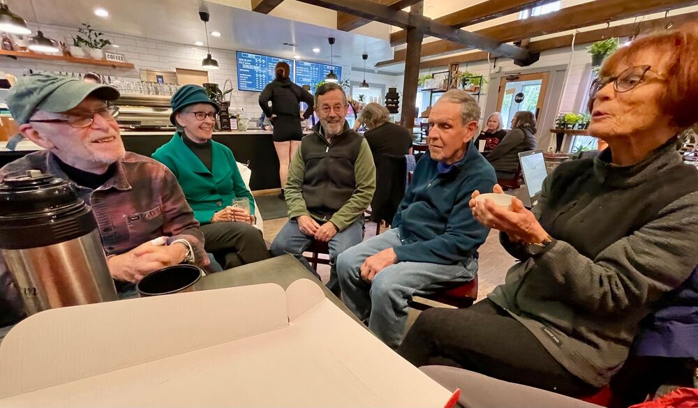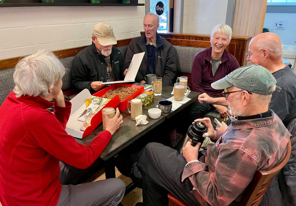 Since we still wanted to enjoy each other’s company, we all headed for Rogue Valley Roasting Co. in Ashland. When we arrived we began to grab all the spare chairs to put around one small table for the seven of us.