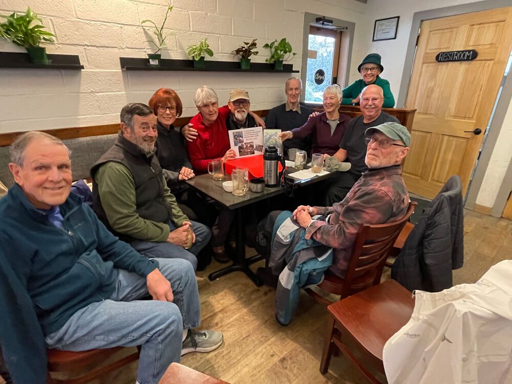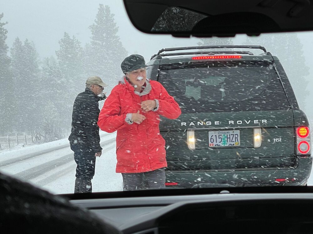 Two carloads set out for Steve Stark’s mountain lake property to enjoy the snow, but it was too much of a good thing. As we drove up DIM Rd we experienced more cold weather with more snow coming down. As the snow began to stick on the road, we were all becoming more doubtful that we would reach our destination 20 miles up the road. Finally, at the Howard Prairie turn off we made a U-turn back toward Ashland.