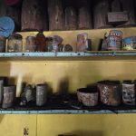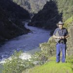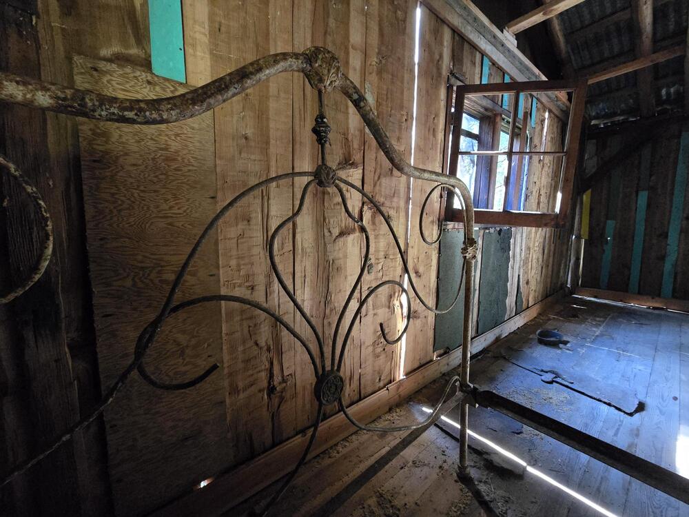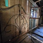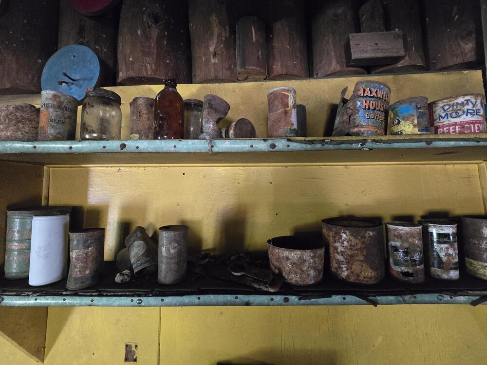 Crossing the bridge we took the short hike up to Whisky Cabin. Lew Martin, the resident gold miner in the 1950s and into the 70s, kept a one bedroom cabin that included a cold storage locker, outside shower, toilet and tool shed, and featured a ditch dug for panning gold.