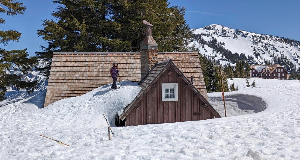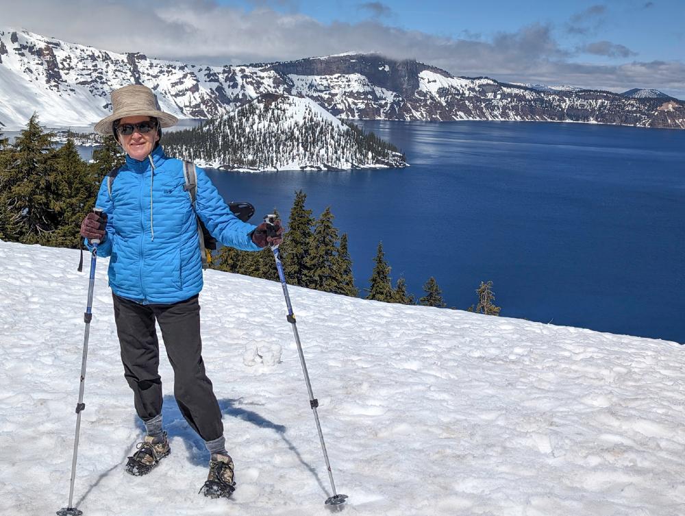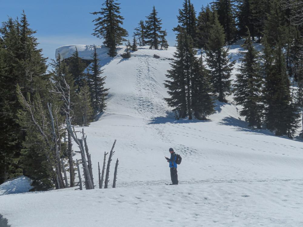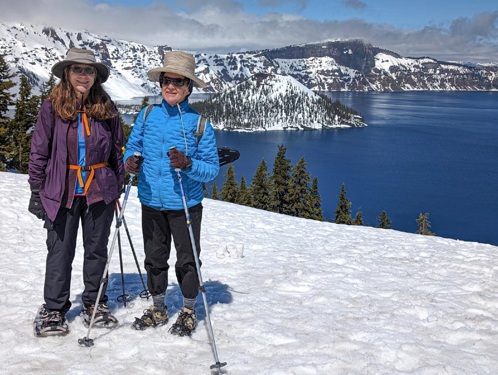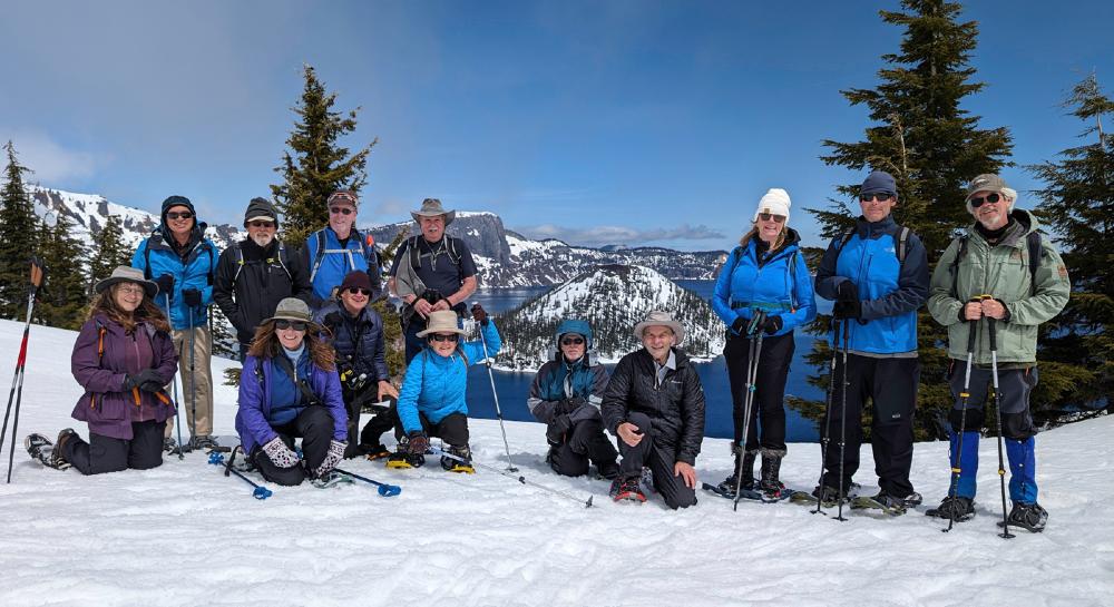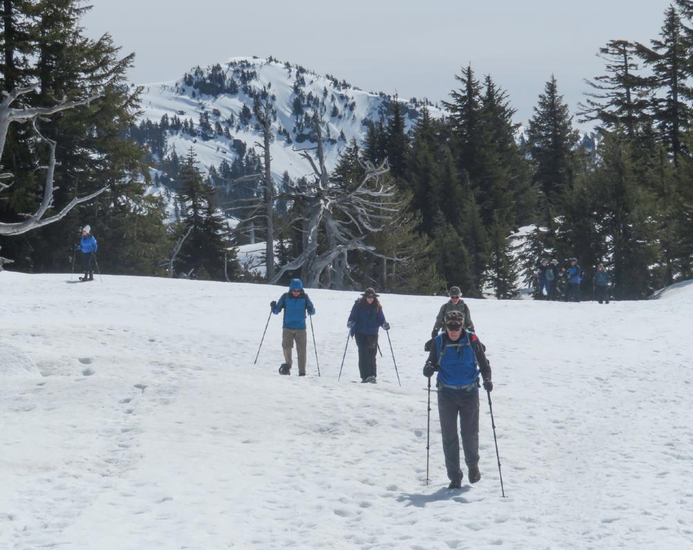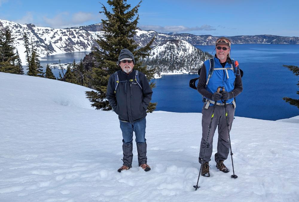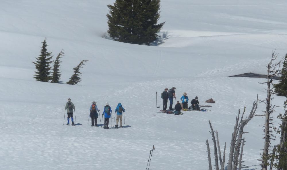 While people back in Jackson County were filing last-minute taxes, wondering how much of a Kicker they’d get from Oregon or just watching their garden grow; the Monday group was challenging the 20′ snow base at Crater Lake.