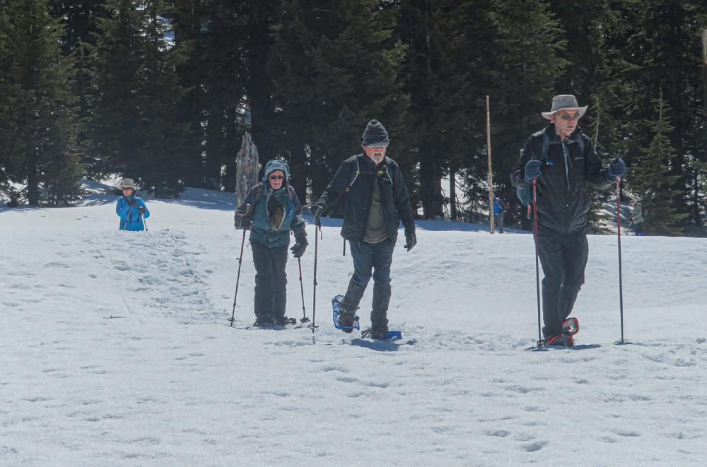 Once we all managed to attach our snowshoes we were off for our last snowshoe hike of the season.Β