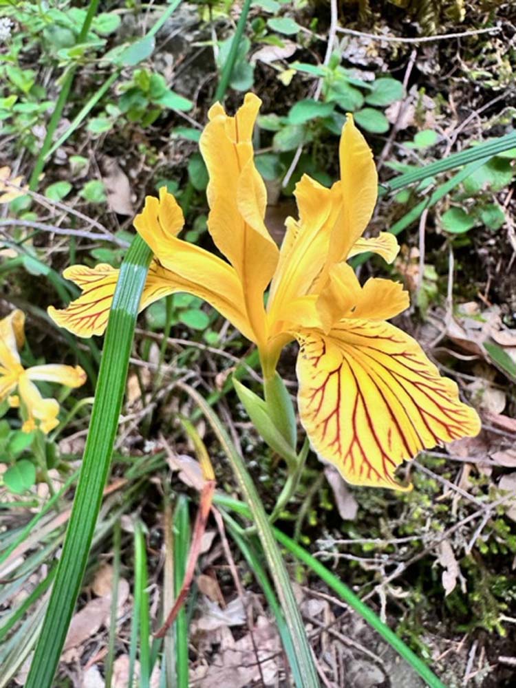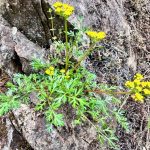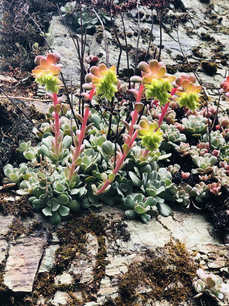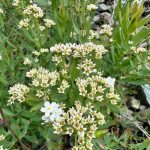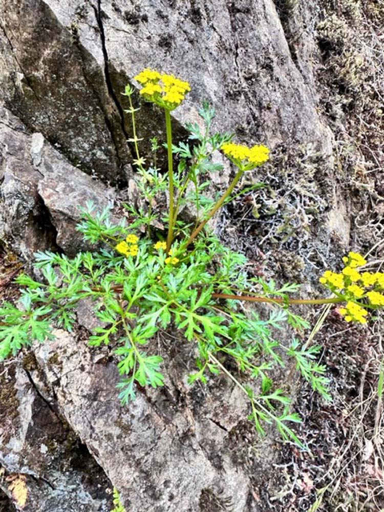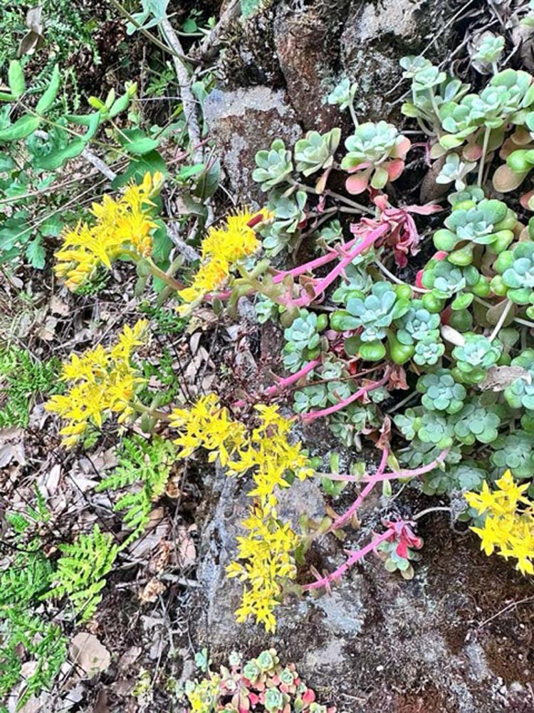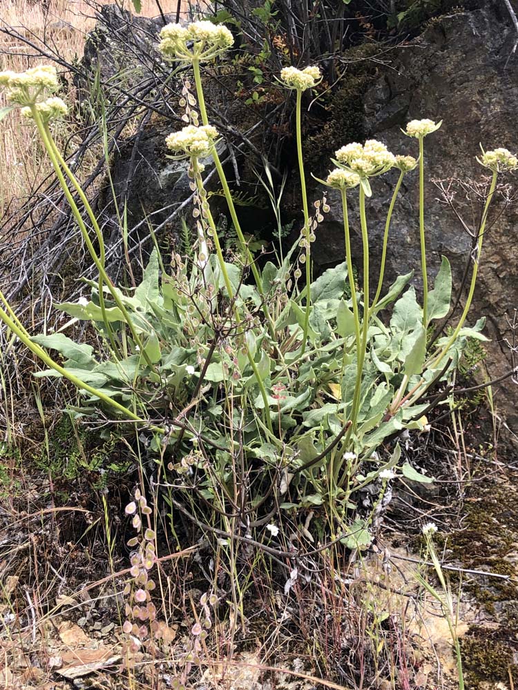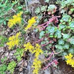 I wasn’t expecting buckwheat yet – silly me. Just down the trail, big, fluffy Arrowleaf buckwheat (Eriogonum compositum) and completely opposite looking Naked or Barestem buckwheat (Eriogonum nudicale) were blooming their heads off. So were the Del Norte iris, Oregon stonecrop (Sedum oregana) and Pacific or broadleaf sedum (Sedum spathulifolium).