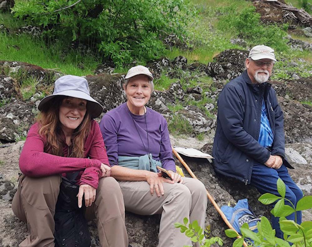 Rich and I drove the newly opened Merlin to Galice road over the bridge to the Grave Creek parking lot and trailhead and met up with Eva and Ron. It was great to see lots of river rafters preparing to float the river on a cloudy and cool but very nice day.